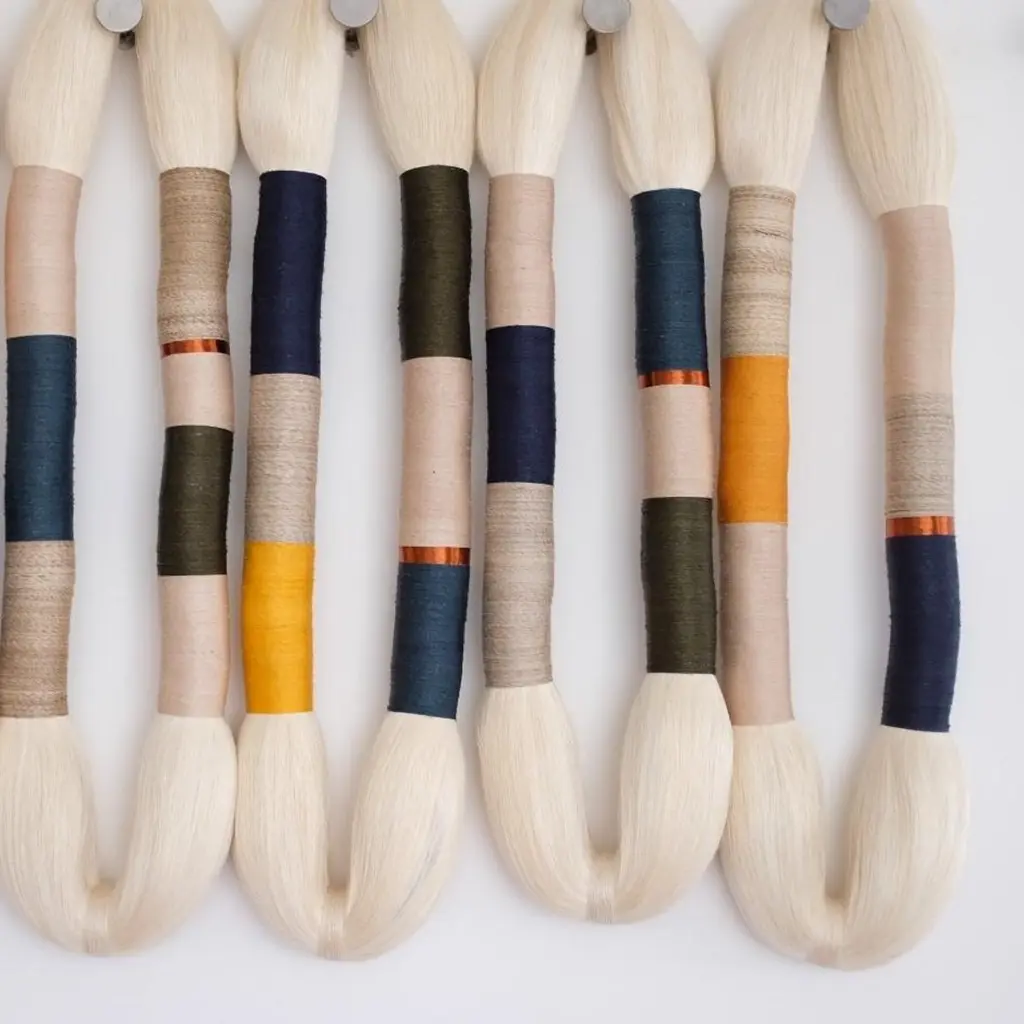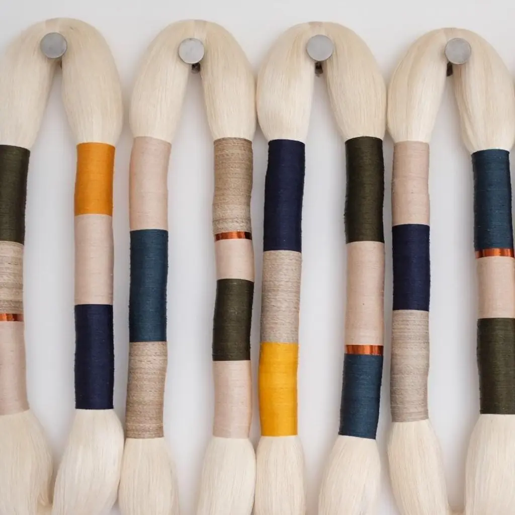 5 Ropes by Alejandra ArtizabalDimensions: 110 cm x 130 cmMaterials: Fique - Furcraea andina. The plant is transformed manually into textiles and ropes and usedin various applications in agriculture, handicrafts and other products.We are one. Mother earth holds us altogether. The peasant, the CEO, the designer, the artist. Colombi- an, French, American, African... How can I help open a conversation where this unity is addressed? Each of us, from our own contexts and professional practices should have purpose and conscious- ness as the pivotal force that shapes cultural dynamics and gives place to empathic transformations. From my place as an artist I wish to open conversations about nature, social narratives and manual traditions. I feel the need to be a part of this, aiming to connect and open an empathic visual space of communication and reflection. I believe in art with a purpose. Environmental purpose, social purpose and aesthetic purpose. In the world’s hectic climatic agenda and social disruption, we need to activate and motivate a transi- tion towards a sustainable global future, installing cooperation in daily deeds and shifting from unconscious consumerism and automated actions to conscious decisions, as local actions have global consequences. I want to promote natural resources and materials, like Fique, main symbol of my artistic work. I want to elevate autochtonous practices and native traditions, and people whose lives are sustained around the transformation of this plant. I want to give voice to crafters and redisco- ver manual practices. Through my art, I want to take you back to mother earth though a visually appealing journey. I was born in Colombia, a tropical paradise: biodiverse, environmentally rich, resourceful and exotic. It was once a country filled with violence, blood and drug cartels, and now slowly regaining its splen- dour. I work with fique - Furcraea andina - a species native of south american andean region, and one of the Colombian national fibers. The plant is transformed manually into textiles and ropes and used in various applications in agriculture, handicrafts and other products. As a country we are now aiming to create new social narrative around our resources and the people that shape them. It’s time to “turn over the new leaf”, understanding and learning from the past but generating new opportunities and ways of doing in our country, like substituting coca crops for other sustainable legal plantations. Besides this, it is important to reinstall a new way of farming, by slowly re-educating farmers and consumers, highlighting and leveling-up new materials and species and giving way to an agricultural environment around peaceful politics.