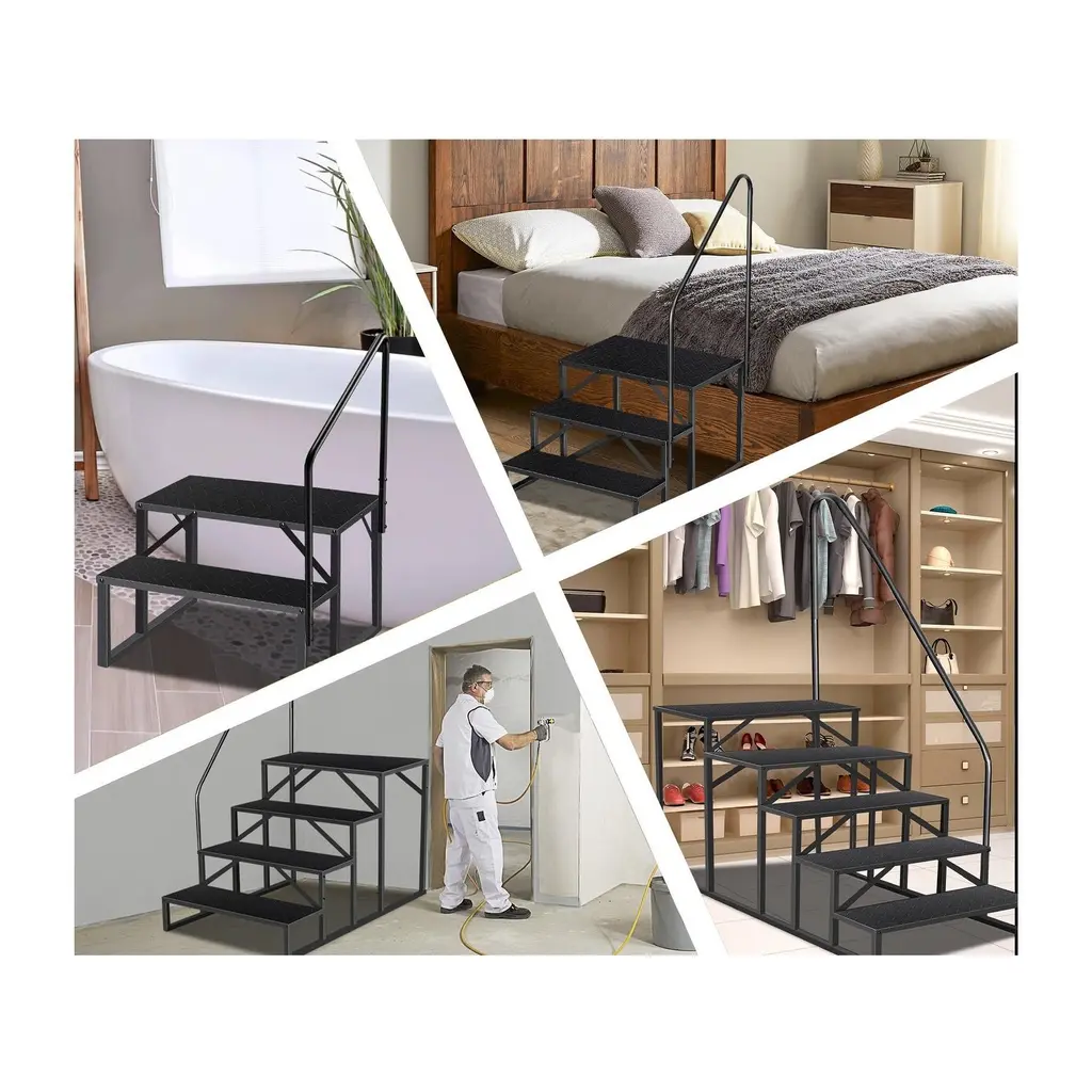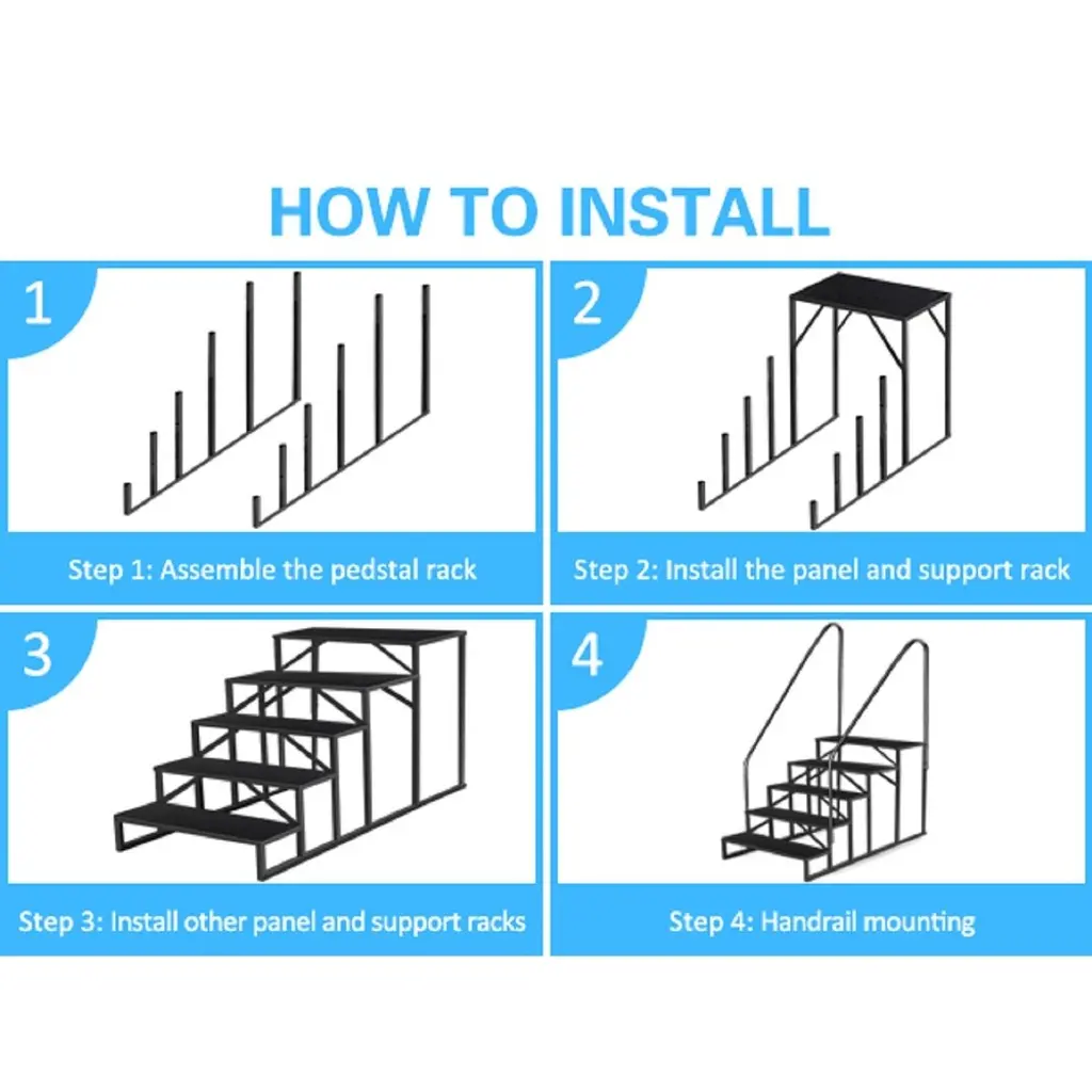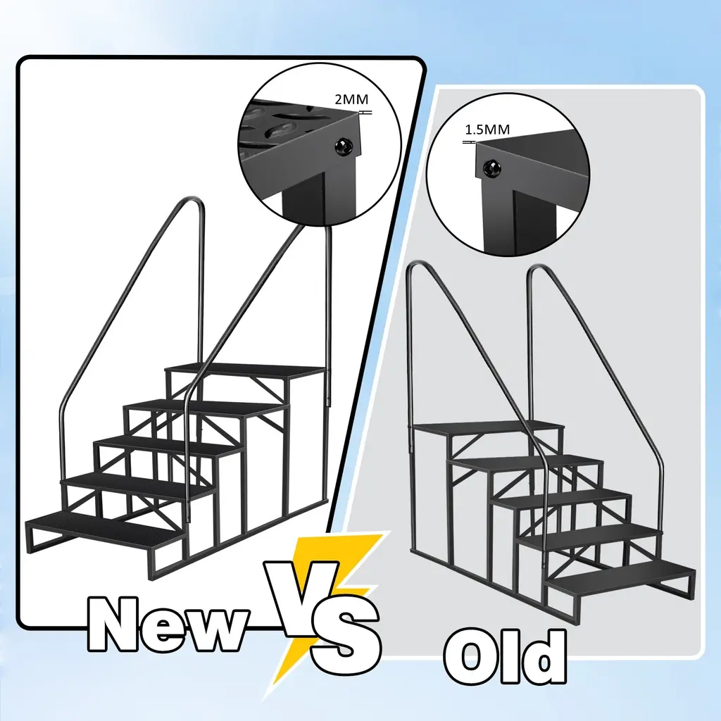 Specification: Key Features: Description: This 5-step ladder with a handrail is designed for maximum stability and convenience, featuring a 660 lb weight capacity. Ideal for RVs, travel trailers, mobile homes, and above-ground pools, it offers a safe solution for reaching high places. The ladder's anti-slip, 1.8mm thick steps ensure secure footing, while the heavy-duty iron construction and triangular bars enhance durability. The handrail, which can be installed on either side, provides additional support for safe climbing. This portable, easy-to-install ladder is perfect for various outdoor and indoor applications, with detachable steps for compact storage.