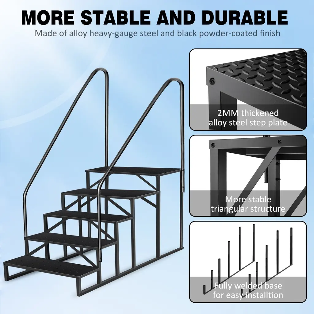 5-Step Pool Ladder With Handrail, 660 Lb Capacity Anti-Slip Steps For Rv And Mobile Homes - (27.2 X 52.8 X 68)"(l X W X H) - Black