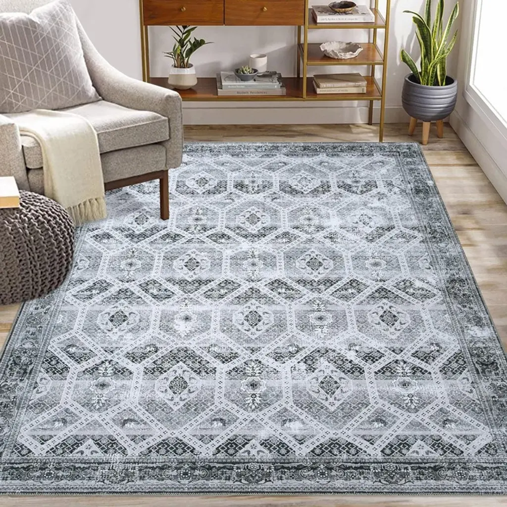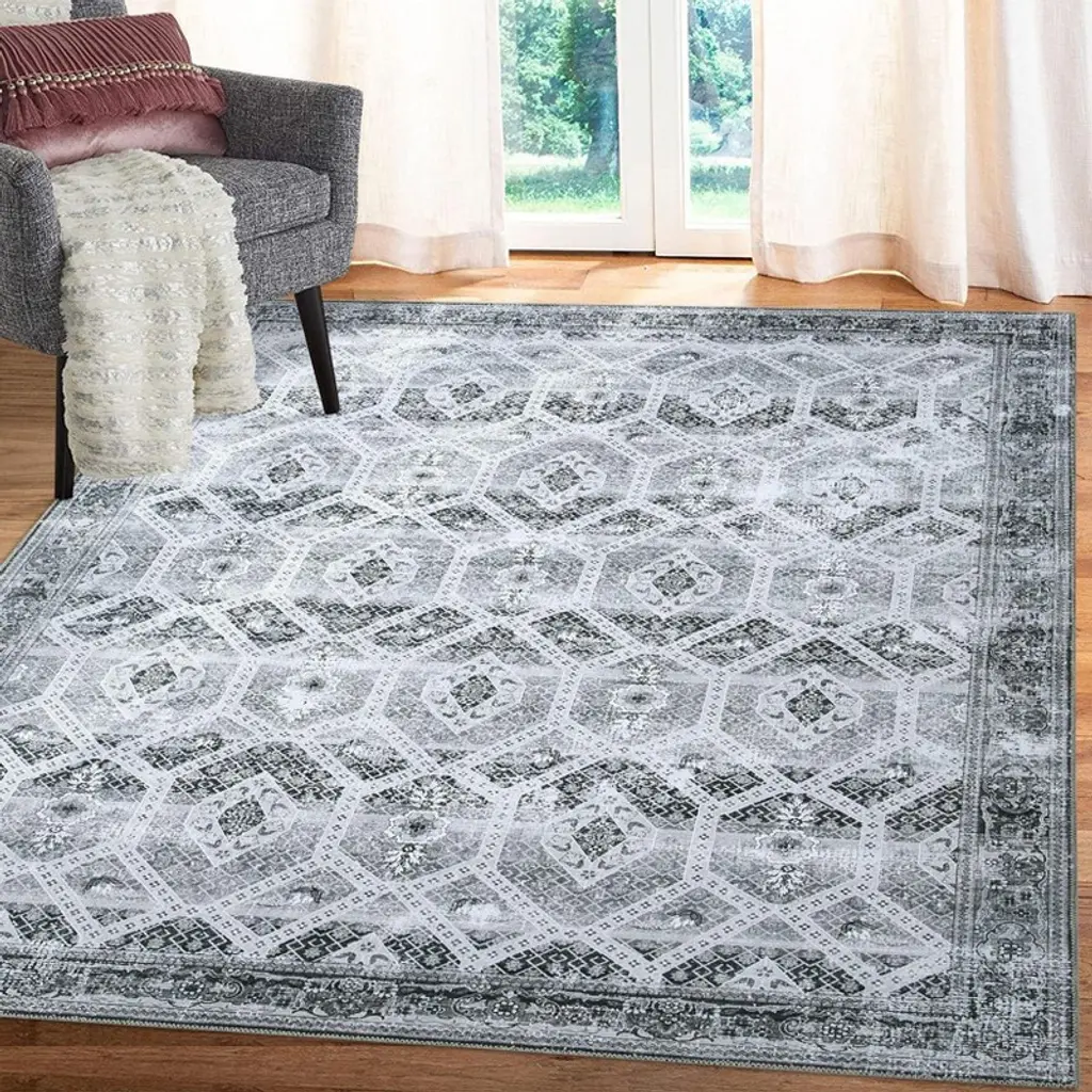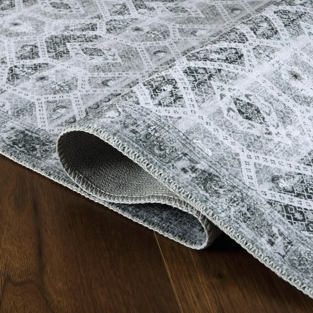 5 X 7 Ft Polyester Gray Rectangular Hallway Bathroom Entryway Kitchen Office Foldable Flower Printed Washable Area Rug