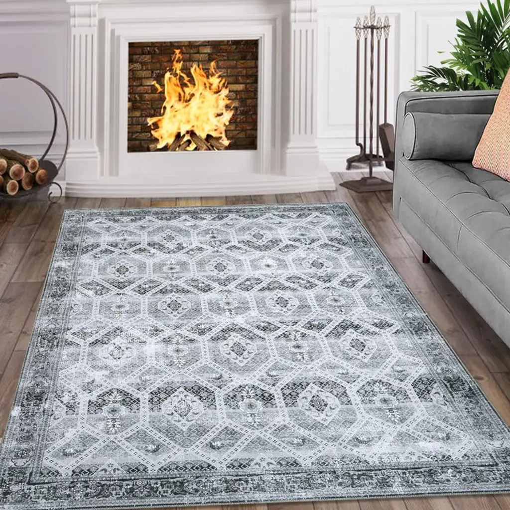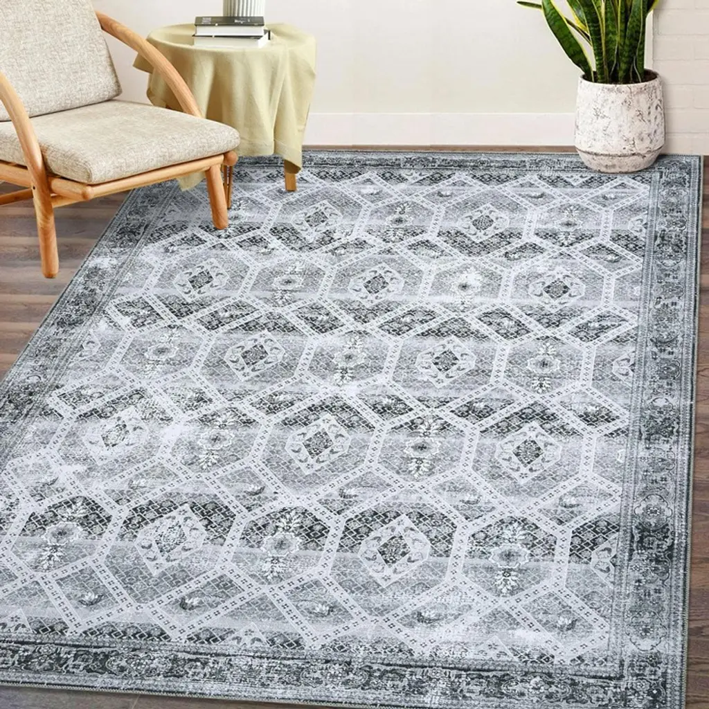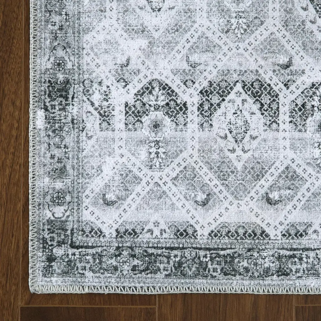 5 X 7 Ft Polyester Gray Rectangular Hallway Bathroom Entryway Kitchen Office Foldable Flower Printed Washable Area Rug