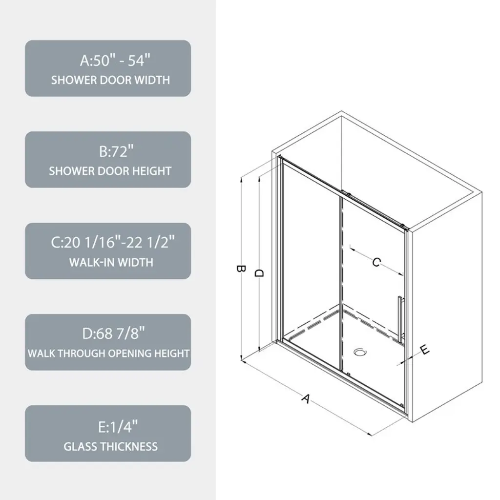 50-54'' W X 72'' H Framed Sliding Glass Shower Door With 1/4'' Tempered Clear Glass - 5472 - Matte Black