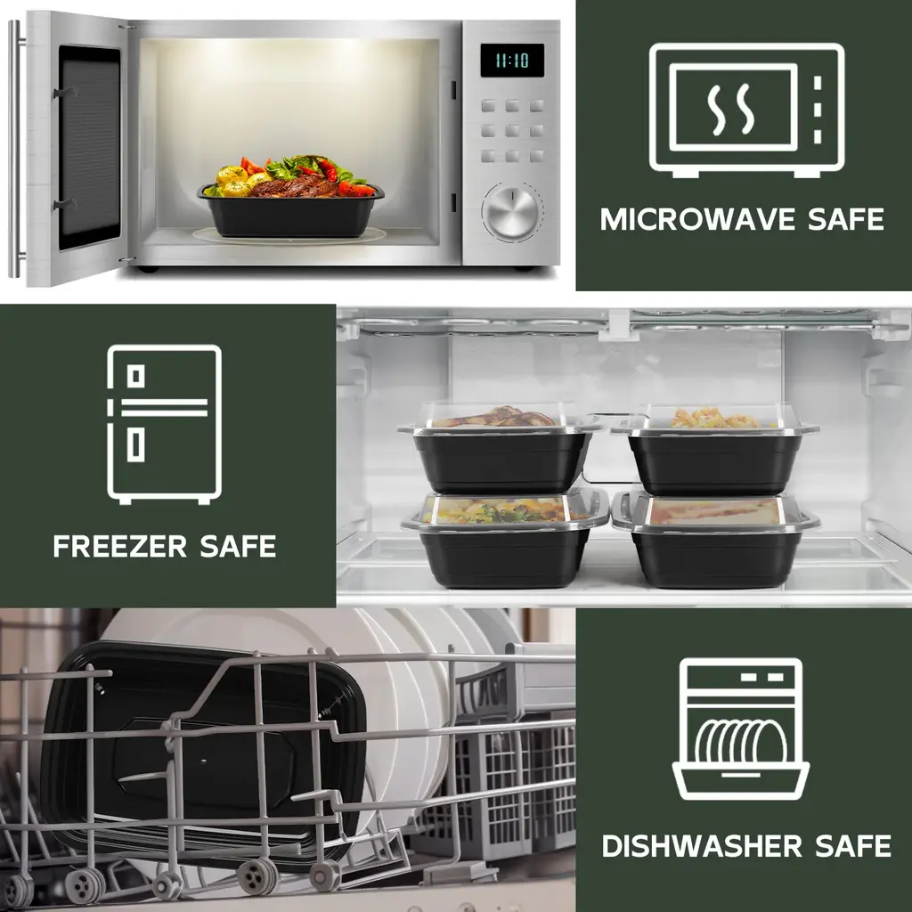 · Strong Durable Construction: The hard-plastic construction will ensure no cracks or breaking along the way. The leak proof lids will tightly seal the food containers for meal prepping, preventing any annoying leaks or spills in your bag or freezer.· Freezer Safe Food Storage Box: Prepare and package up your meals ahead of time. These safe to freeze food containers ensure that your prepared cooked meals retain their flavor, color, and texture. These plastic boxes with lids will prevent freezer burn and any absorbing of other odors from the freezer.· Microwave Safe for Warming Food: Enjoy the ease and efficiency of using a microwave safe meal prep container. Whether you are in a rush at home, or warming up food in the microwave at the office or in your college dorm room, make your life simple by preparing, packaging and warming up your food all in the same dish.· Safe Material: Food-Grade Safe PP material. You can reuse these durable to go containers as many times as you like. Clean these portion control boxes easily by placing on the top rack of the dishwasher. If you don’t want to reuse them you can simply throw these containers into a recycling bin or trash.· Great for Catering Services: Perfect for packaging food at your deli, kiosk, food truck, catering service or restaurant for to-go meals. they stack neatly on top of each other allowing for completely mess free transportation and making all your customers happy as well.
