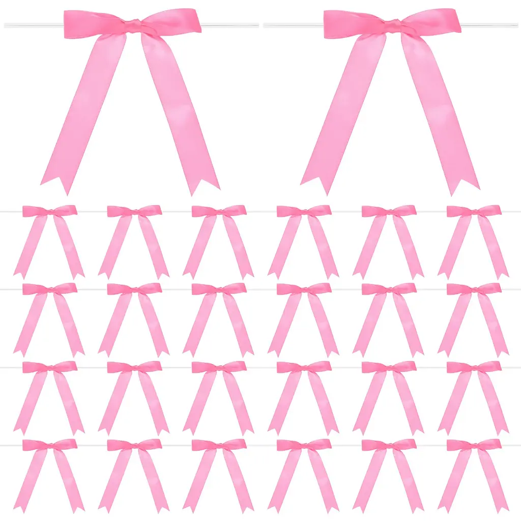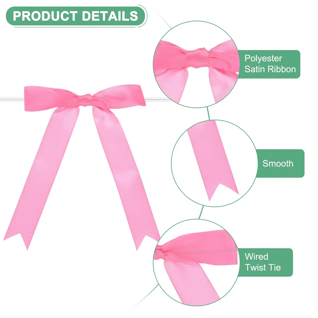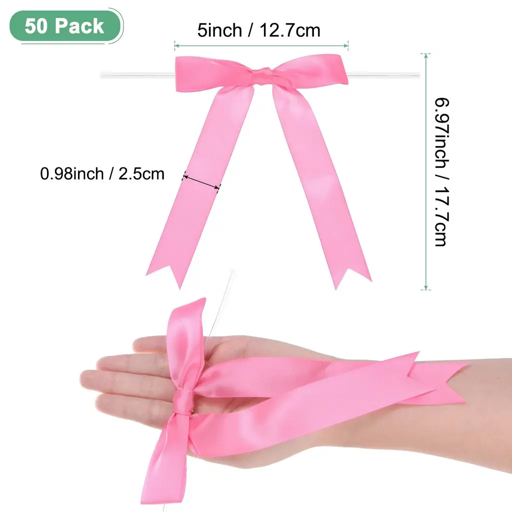50-Pack Satin Ribbon Twist Tie Bows 7X5" Bow Twist For Craft - Pink