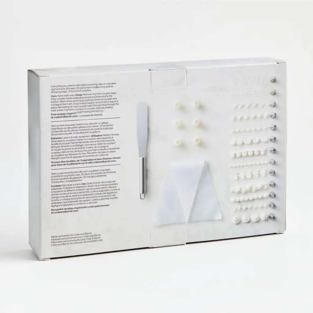 Designed for serious cake and cookie decorators, this comprehensive kit makes it easy to switch among many icing and frosting colors. Whether you're piping countless dots to create an intricate birthday cake or decorating Christmas spritz cookies for everyone in the neighborhood, this set gets the job done. A handy gift for the bakers on your list, our exclusive decorating kit includes an icing spatula, 30 piping bags, 13 piping tips and 6 piping couplers.