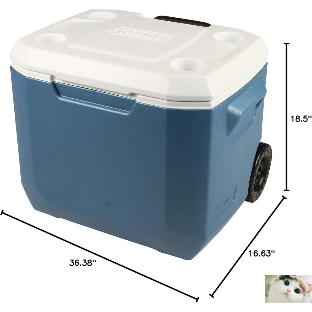 EXTENDED ICE RETENTION: Using New technology, this ice chest cooler with wheels helps maintain ice longer, acting as an efficient beer cooler for up to 5 days, even at 90°F LARGE CAPACITY: Acting as both a large cooler with wheels and an insulted can cooler, this portable cooler holds up to 84 cans, perfect for beach or camping coolers EASE OF TRANSPORT: With its durable wheels, this cooler on wheels can easily navigate any terrain, making it the perfect choice for a beach cooler with wheels or a travel cooler for car IMPROVED DRAIN SYSTEM: This camping cooler features a leak-proof drain for easy water removal, enhancing the functionality of ice chests and coolers by eliminating the need to turn upside down ROBUST LID: With a weight capacity of 250 lbs, the hard shell cooler lid doubles as a seating area, giving an added benefit to this rolling cooler, perfect for outdoor adventures TELESCOPING HANDLE: For easy pulling and compact storage
