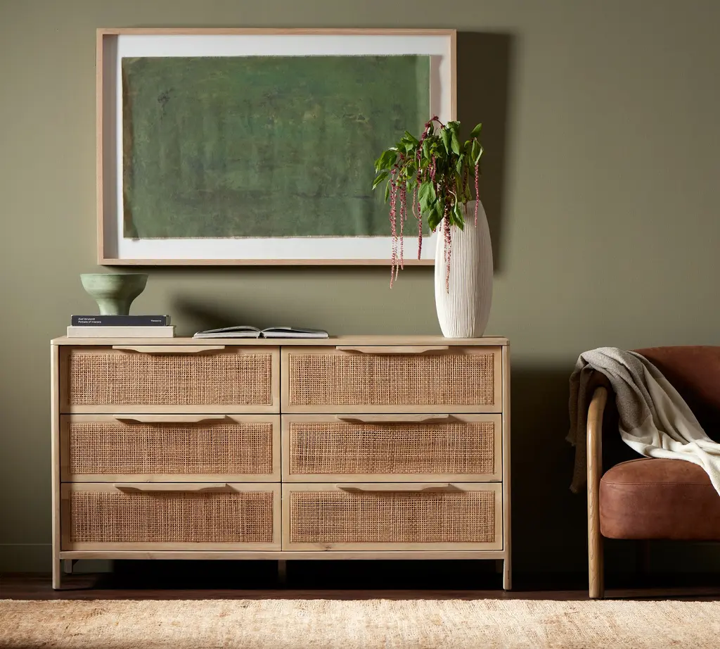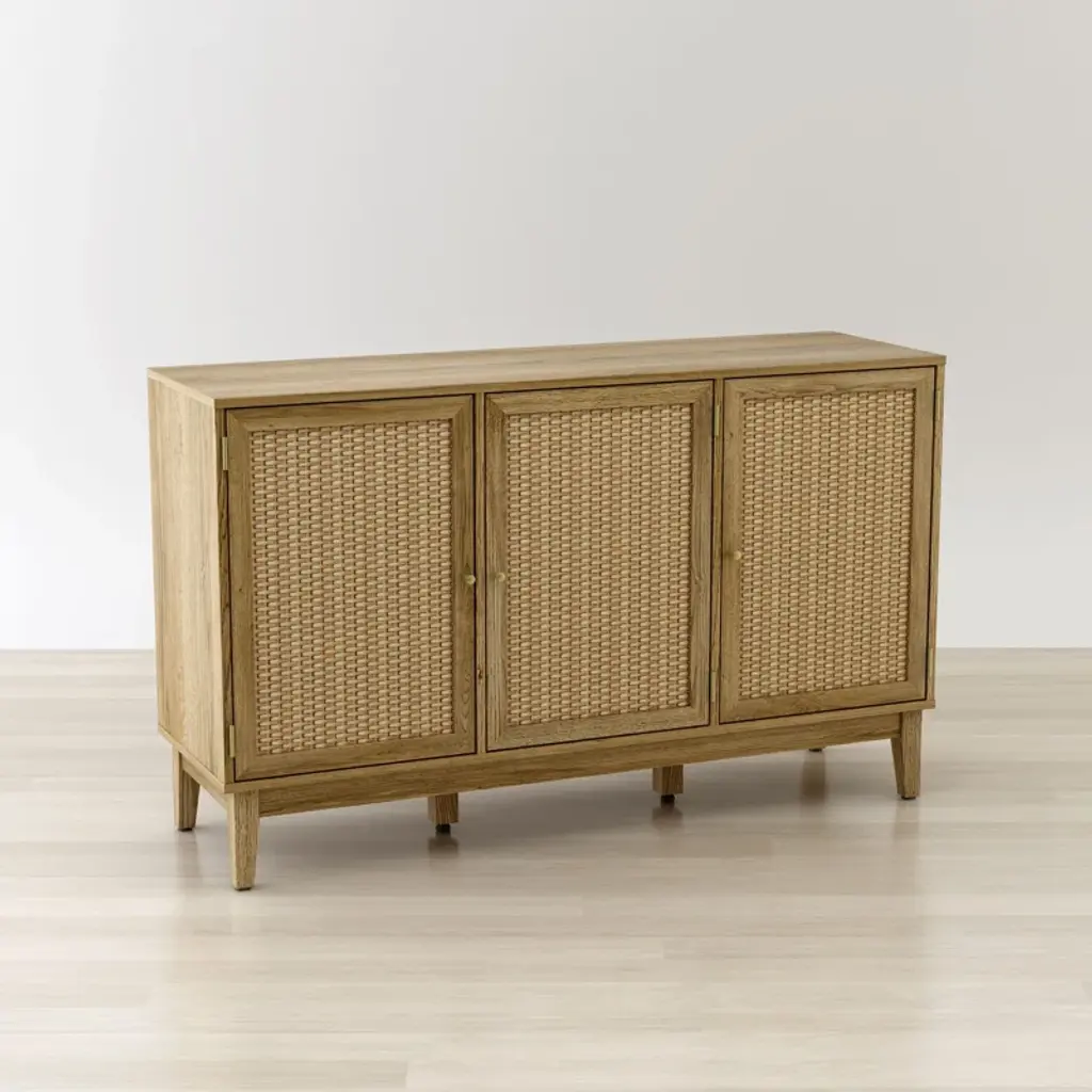 The Bodrum 50” Large Sideboard featuring synthetic rattan doors is the perfect complement for the living room or bedroom that will match any décor in your home. Place on top your portraits, vases, objects and more, with even more storage space inside its three synthetic rattan doors. Featuring gold plated door handles that elegantly accents the color of the sideboard, this sideboard also features adjustable non marking foot pads to protect flooring and provide stability on any surface.
