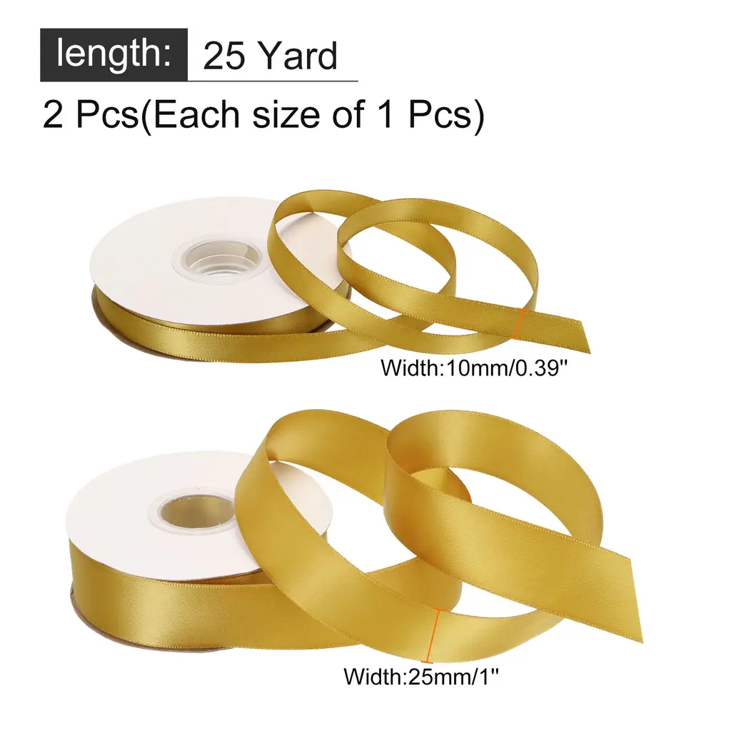 50 Yard Satin Ribbon For Gift Wrapping Ribbon - Champagne Gold - 1/4" & 3/8"