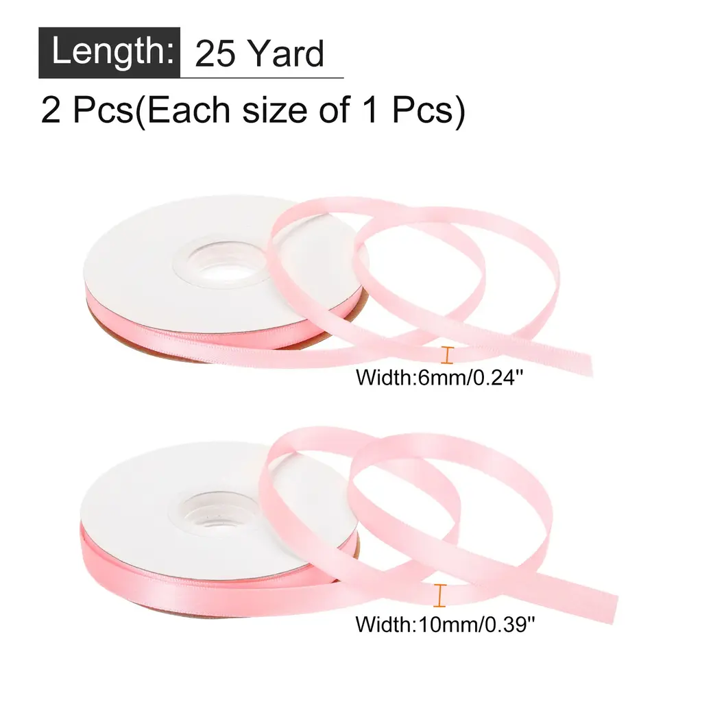What is this?Valentine ribbon grosgrain silk pastel thin ribbons gift ribbon is suitable for flowers floral packaging box, birthday decoration, flower design, party decoration, floral bouquet ribbon, hair ribbons for women, DIY crafts handicraft decoration, making bows, gift wrapping packaging, holiday decoration, scrapbooking, and can be used to decorate birthday party. Ribbon for flower bouquet, suitable for important festival such as Valentine's Day, Christmas, Easter, Halloween, Teacher's Day, Mother's Day, birthdays, etc.What will I get?Flower bouquet ribbon, is in size of:1/4 inch(6mm) and 3/8 inch(10mm) width, 50 Yard length(6mm x 25 Yard and 10mm x 25 Yard, total 50 Yards)In the package of: 2 Roll x Flower bouquet ribbon(1pcs x 6mm width ribbon, 1pcs x 10mm width ribbon)Is there any advantages of the product?Thin birthday gift wrapping ribbon, bright color, beautiful, which plays a good decorative role, especially suitable for holiday, birthday and party decoration; Flower wrapping satin ribbon, soft, comfortable to the touch, and durable, important flower bouquet accessoriesHow to use it?Steps of installation: 1. Select satin ribbon with appropriate specification; 2. For gift wrapping, holiday decorationWhat should I notice?Please pay attention to select the satin ribbon with suitable specifications