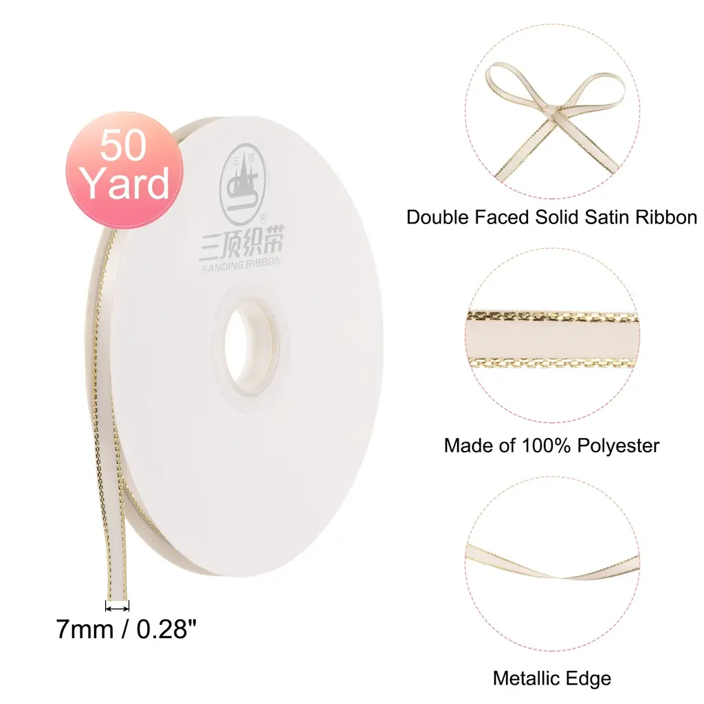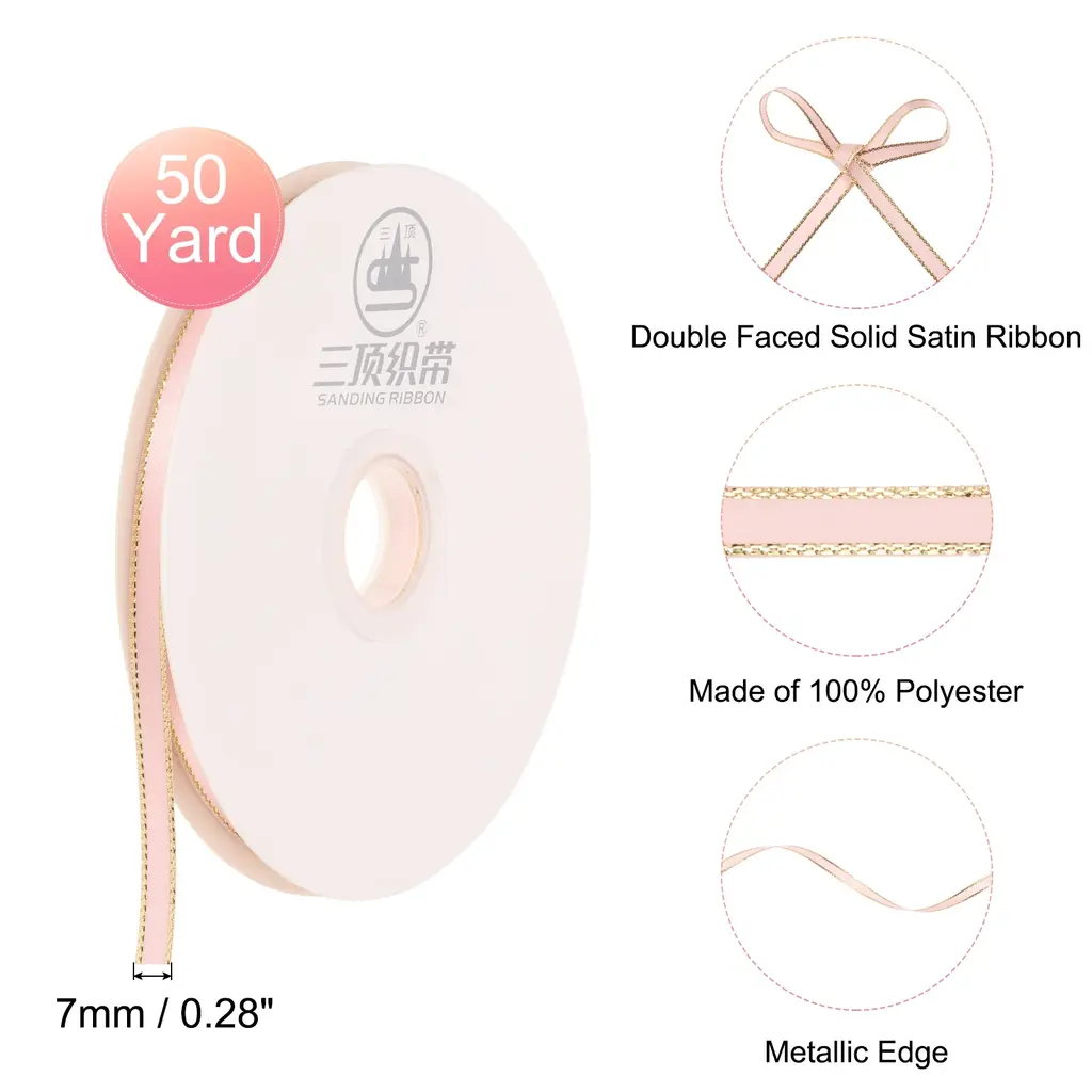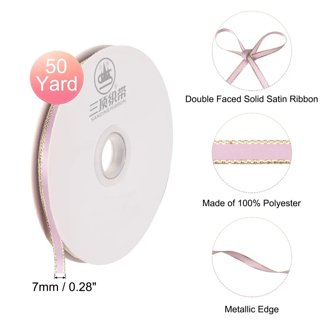 Description:The solid ribbon is made of good quality polyester material with a silky texture and shiny appearance, the ribbon is soft and stretchy while retaining its vibrant color over time, adding a beautiful look to whatever occasions and crafts you need.The gift-wrapping ribbon is a solid color with a simple design, bright color, and good color fastness, which can add a lively atmosphere to gift packaging or holiday decoration.This ribbon decoration is quick and easy to use, you can use scissors to easily and quickly cut the ribbon to your desired length to avoid excessive waste. You can shape the ribbons into various decorations or attach them with thread, or tape wherever you want to decorate.Ribbons have a wide range of applications, especially suitable for gift box packaging, invitations, floral designs, handmade DIY rose packaging, holiday and party decorations, baking packaging, bouquet ribbons, crafts, and more creative designs.Specification:Material: Chiffon, PolyesterColor: Pink, Gold EdgeWidth: 7mm/0.3"Length: 5 yardsPackage Content:1 Rolls × Handmade Frayed Ribbon
