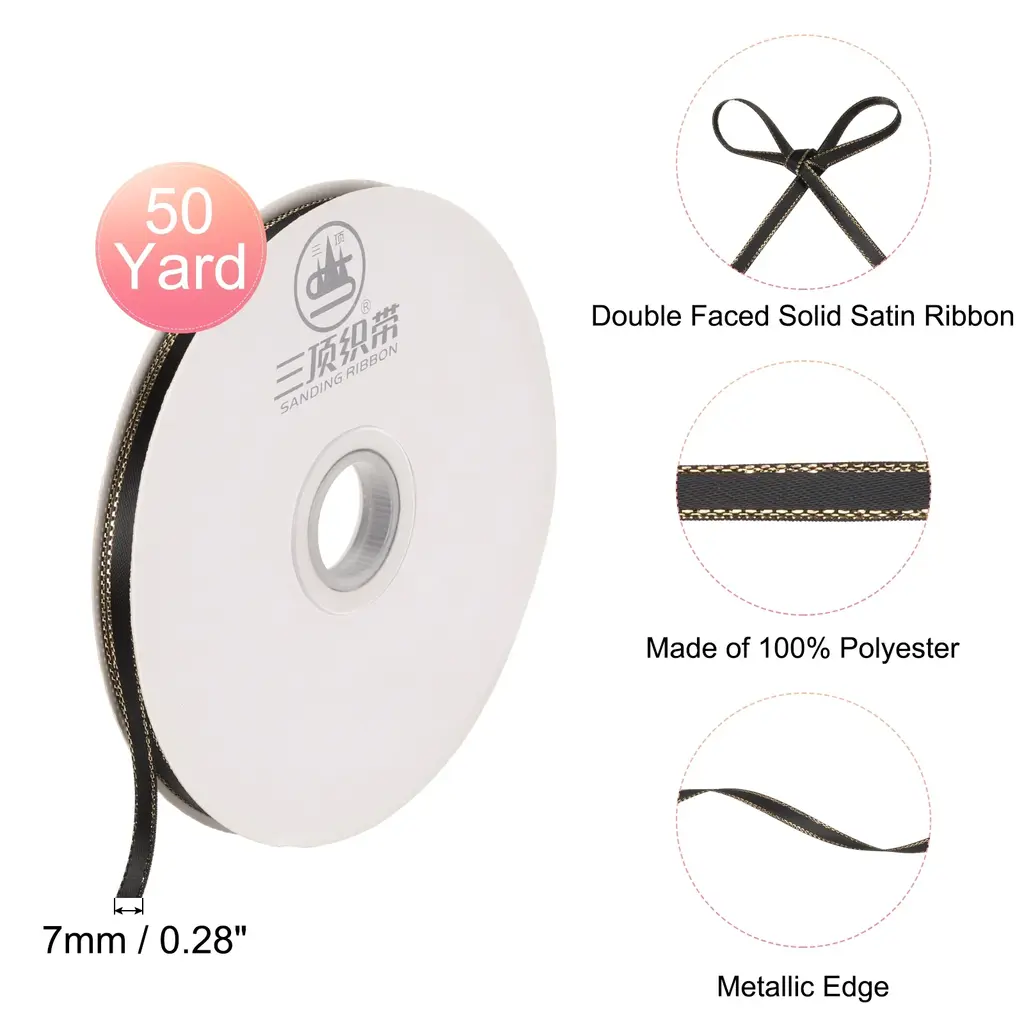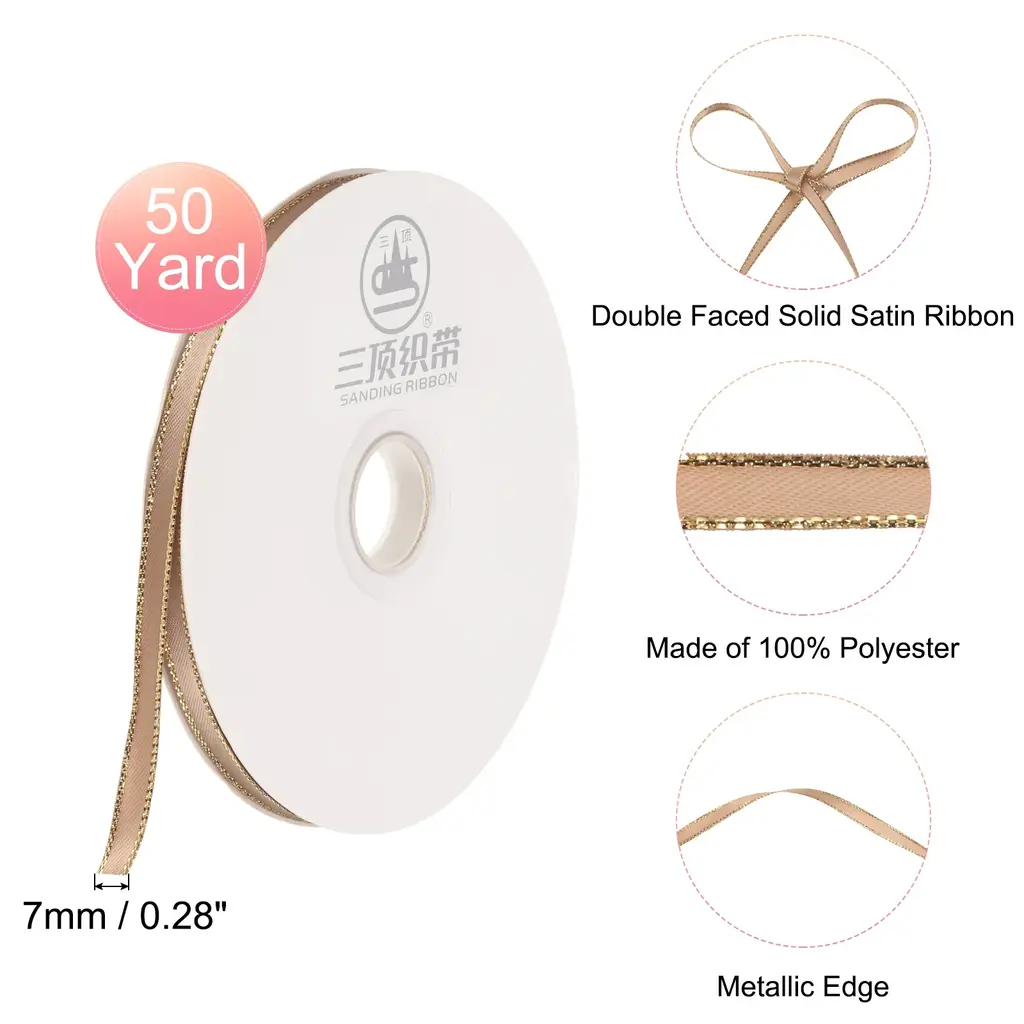 50 Yards Satin Ribbon Polyester With Gold Edge For Gift Decoration, 1 Roll - Khaki,gold Edge