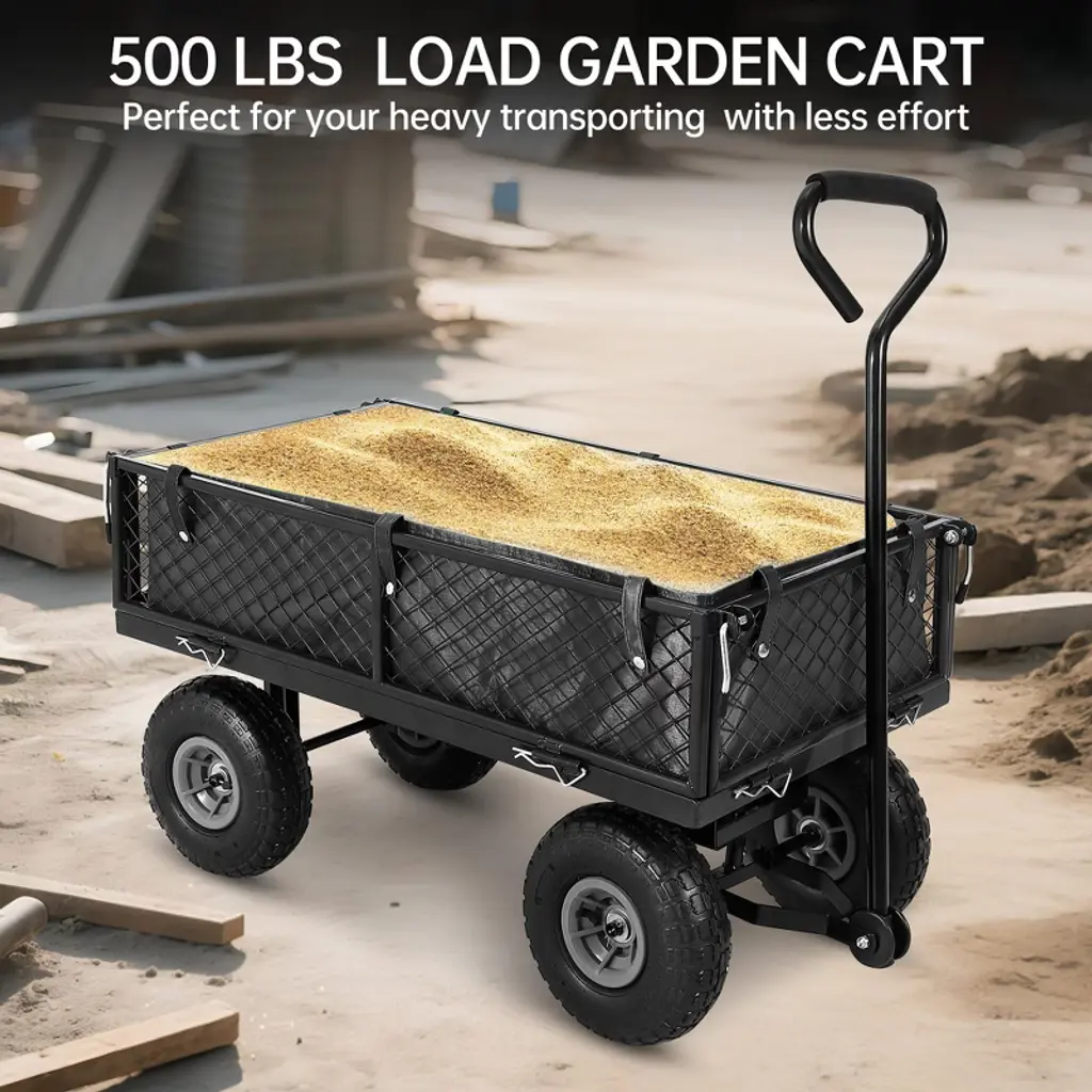 500 Lbs Capacity Heavy Duty Mesh Steel Garden Cart, Folding Utility Cart W/removable Side Nets & 10 In Pneumatic Tires For Gardens, Lawns, Black