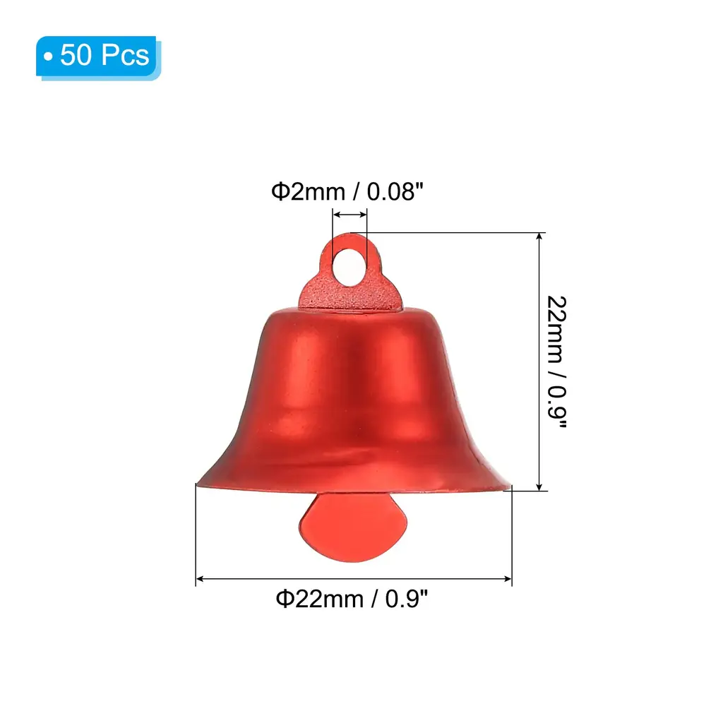 50pcs Jingle Bells 0.9" Metal Hanging Bells - Red