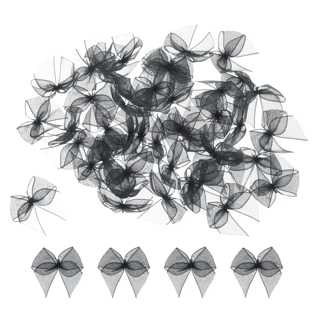What is this?These ribbon bows are mostly used in the hemming and decoration of leather goods, bags, sleeping bags, tents, and clothing. Because polyester ribbon is soft, they are mostly used for the hemming of softer fabrics.What will I get?The Mini Ribbon Bow, we provide here, is in size of:Material: PolyesterColor: Deep BlackDimension: 1 x 1 inchIn the package of: 50 x Mini Ribbon BowsAre there any advantages of the product?1. Polyester material, fine texture, high washing fastness, no fading, smooth and wrinkle-resistant, flexible to the touch.2. The product is bright in color, fashionable and new in design, and can be used on many occasions. It is suitable for hair accessories, clothing, Christmas gifts, baking decorations, gift box packaging, hotel decorations, wedding decorations, flower packaging, birthday arrangements, etc.How to use it?1. Choose the color of the Mini Ribbon Bow that matches your project or gift wrapping paper. 2. Use twist ties (not included here) or or glue to secure the mini ribbon bows to desired surfaces such as gift boxes, cards, or crafts. 3. Adjust the position of the bow if necessary to get the desired look.What should I notice?Manual measurement, please allow slight errors in size.Please note that there may be a slight color difference between the picture and the actual product, and the color is subject to the actual product received.