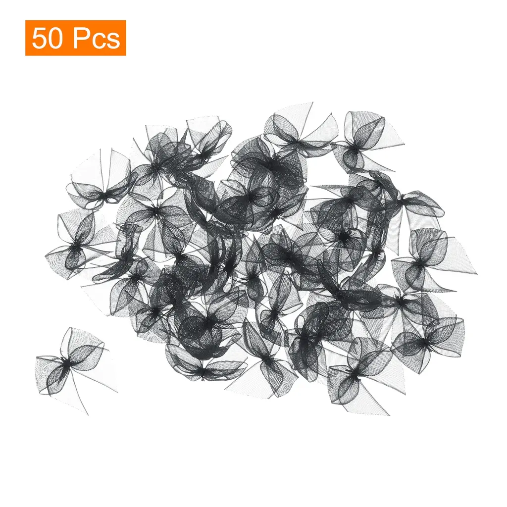 50pcs Mini Chiffon Ribbon Bow 1" Mini Fabric Satin Craft Diy - Deep Black