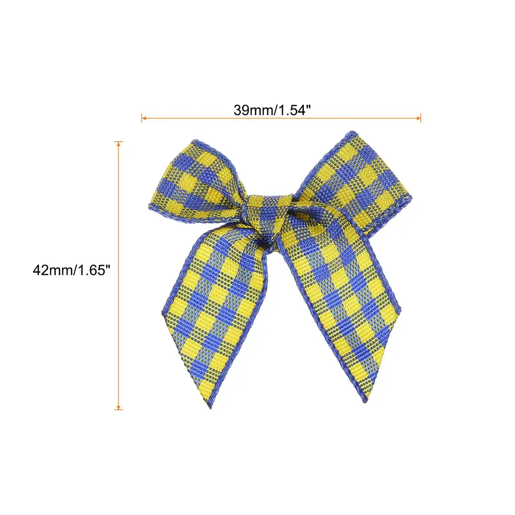 What is this?These ribbon bows are mostly used in the hemming and decoration of leather goods, bags, sleeping bags, tents, and clothing. Because polyester ribbon is soft, they are mostly used for the hemming of softer fabrics.What will I get?The Mini Ribbon Bow, we provide here, is in size of:Material: PolyesterColor: Dark Blue and WhiteDimension: 1.65 x 1.54 inch (W*H)In the package of: 50 x Mini Ribbon BowsAre there any advantages of the product?Polyester material, fine texture, high washing fastness, no fading, smooth and wrinkle-resistant, flexible to the touch.The product is bright in color, fashionable and new in design, and can be used on many occasions. It is suitable for hair accessories, clothing, Christmas gifts, baking decorations, gift box packaging, hotel decorations, wedding decorations, flower packaging, birthday arrangements, etc.How to use it?1. Choose the color of the Mini Ribbon Bow that matches your project or gift wrapping paper. 2. Use twist ties (not included here) or or glue to secure the mini ribbon bows to desired surfaces such as gift boxes, cards, or crafts. 3. Adjust the position of the bow if necessary to get the desired look.What should I notice?Manual measurement, please allow +/-3mm errors in size.Please note that there may be a slight color difference between the picture and the actual product, and the color is subject to the actual product received.