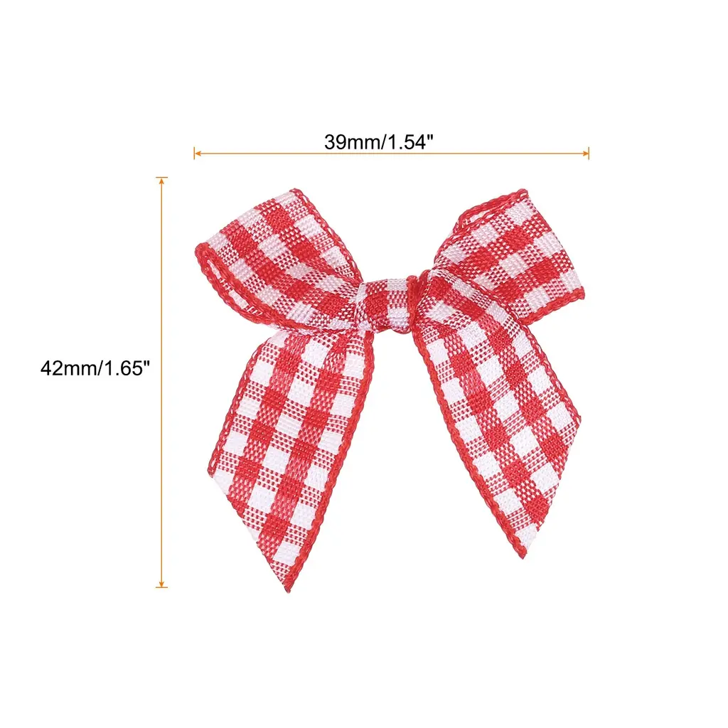 50pcs Mini Gingham Ribbon Bow 1.5" Checkered Fabric Satin - Black And Red