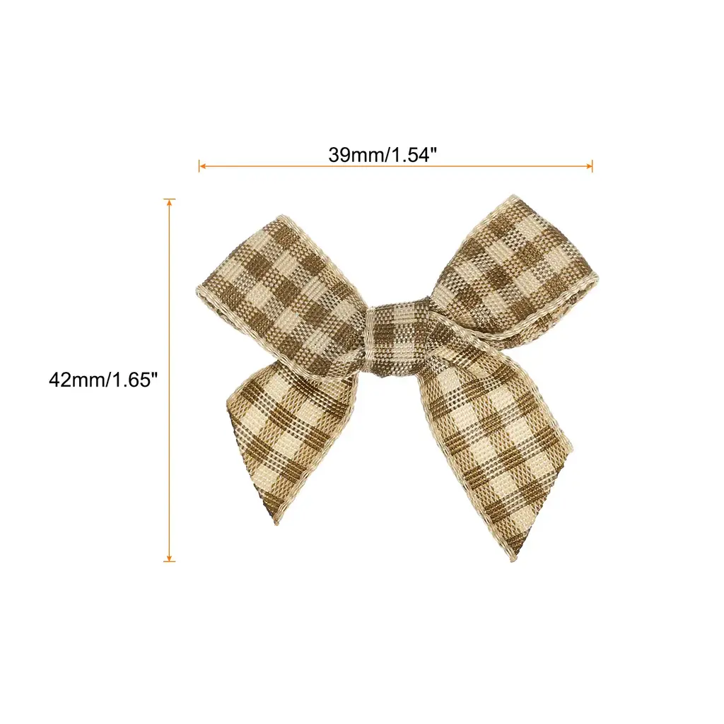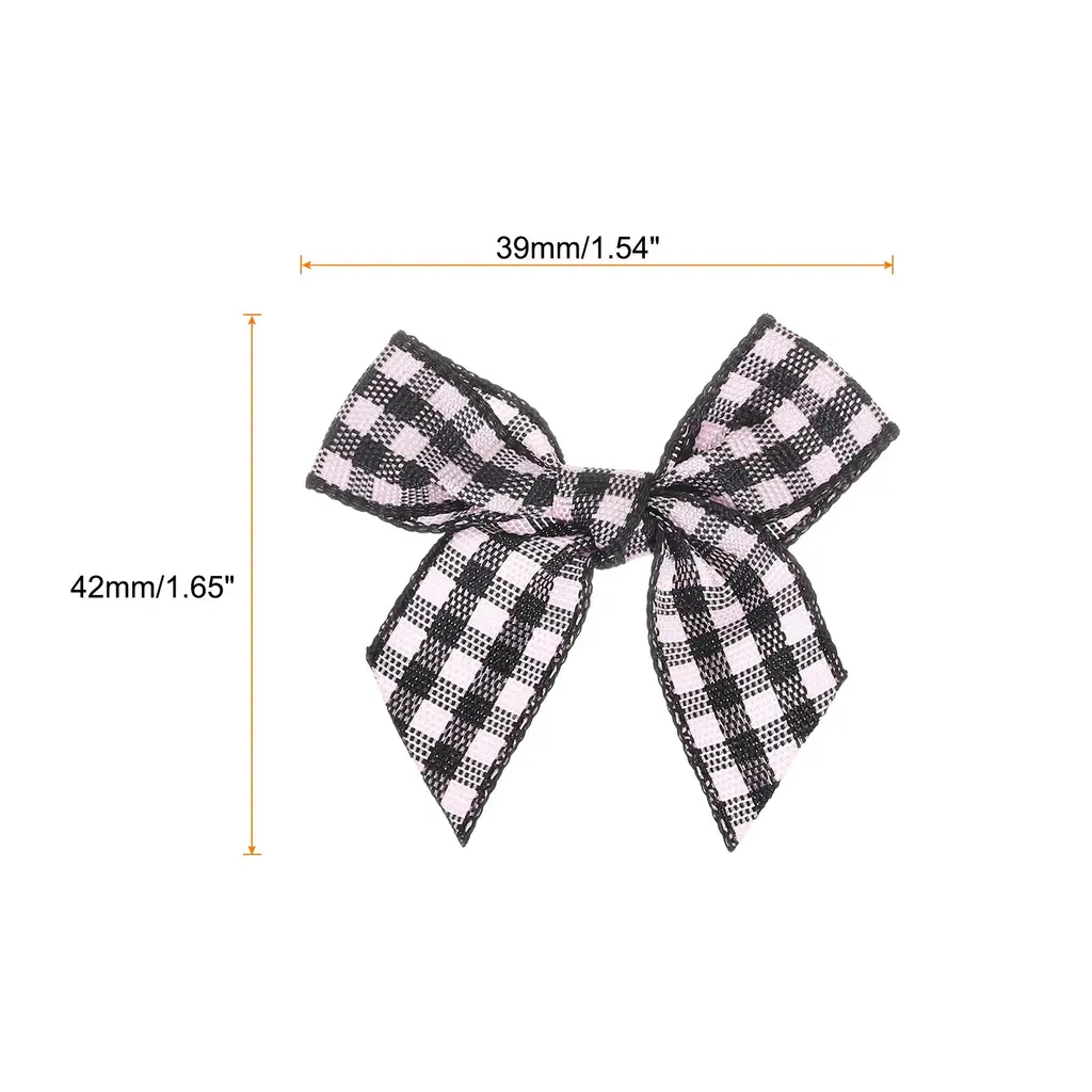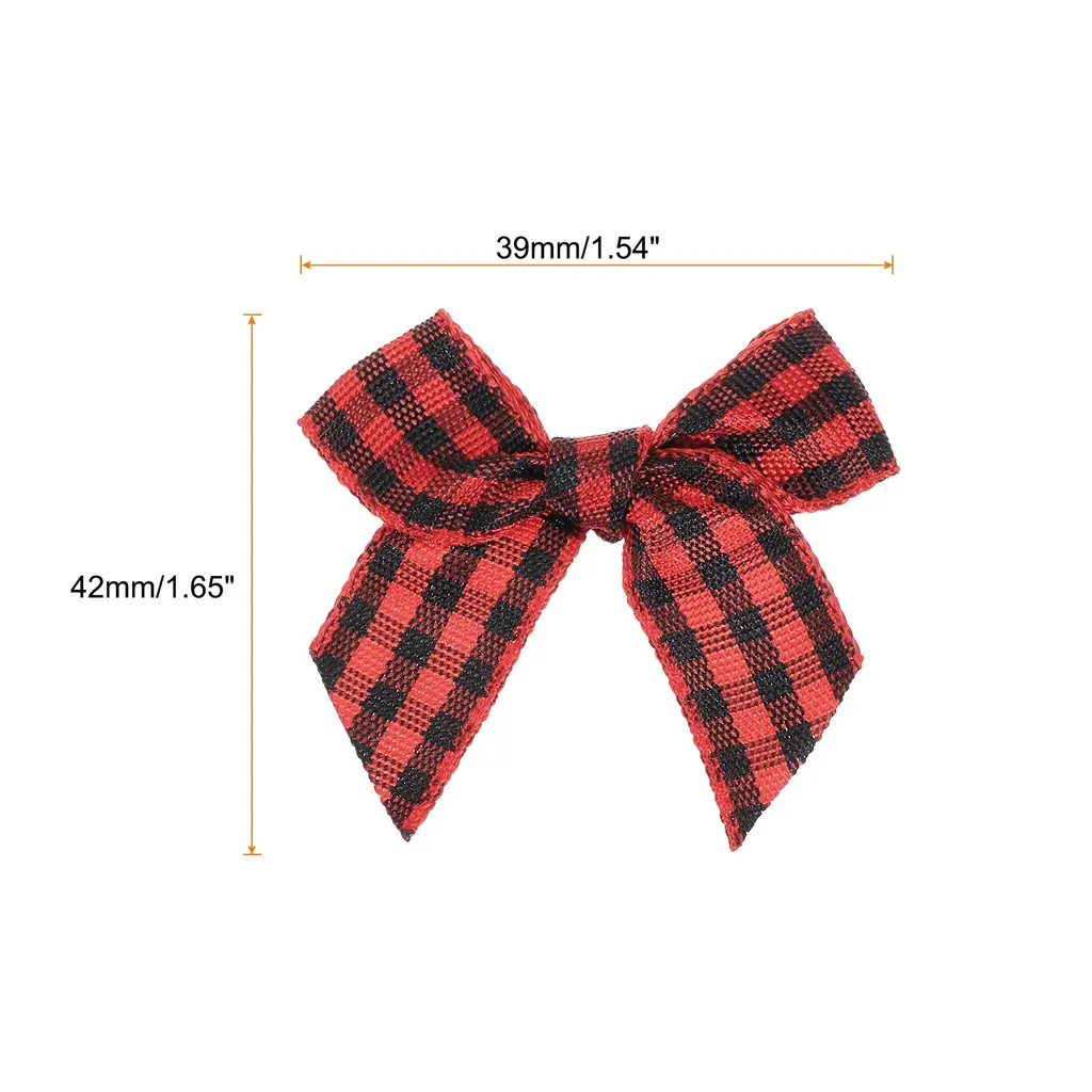 50pcs Mini Gingham Ribbon Bow 1.5" Checkered Fabric Satin - Red And White