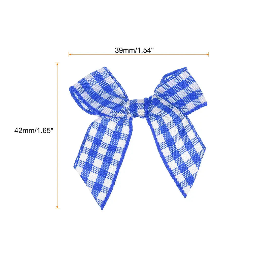 What is this?These ribbon bows are mostly used in the hemming and decoration of leather goods, bags, sleeping bags, tents, and clothing. Because polyester ribbon is soft, they are mostly used for the hemming of softer fabrics.What will I get?The Mini Ribbon Bow, we provide here, is in size of:Material: PolyesterColor: Dark Blue and WhiteDimension: 1.65 x 1.54 inch (W*H)In the package of: 50 x Mini Ribbon BowsAre there any advantages of the product?Polyester material, fine texture, high washing fastness, no fading, smooth and wrinkle-resistant, flexible to the touch.The product is bright in color, fashionable and new in design, and can be used on many occasions. It is suitable for hair accessories, clothing, Christmas gifts, baking decorations, gift box packaging, hotel decorations, wedding decorations, flower packaging, birthday arrangements, etc.How to use it?1. Choose the color of the Mini Ribbon Bow that matches your project or gift wrapping paper. 2. Use twist ties (not included here) or or glue to secure the mini ribbon bows to desired surfaces such as gift boxes, cards, or crafts. 3. Adjust the position of the bow if necessary to get the desired look.What should I notice?Manual measurement, please allow +/-3mm errors in size.Please note that there may be a slight color difference between the picture and the actual product, and the color is subject to the actual product received.