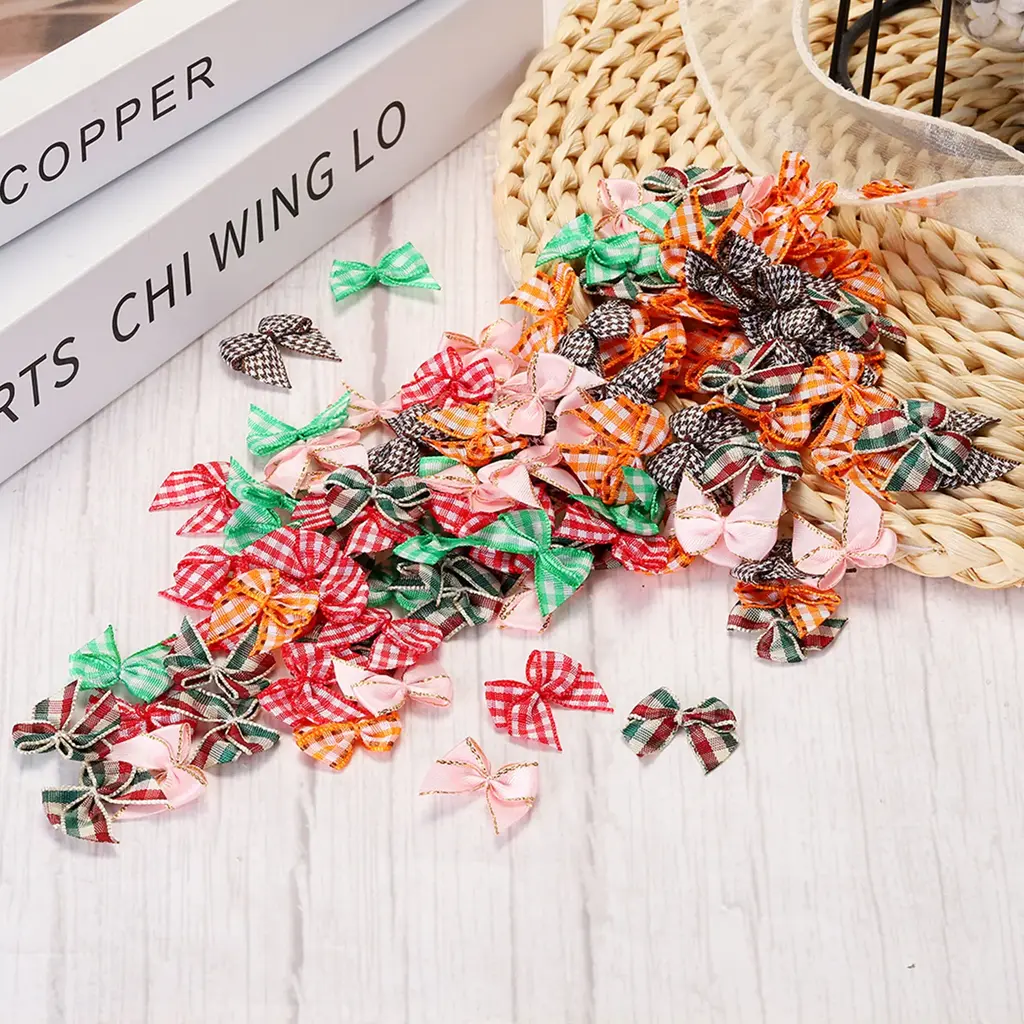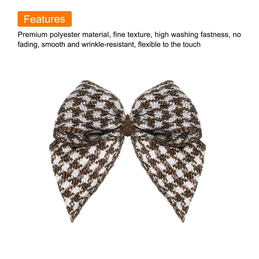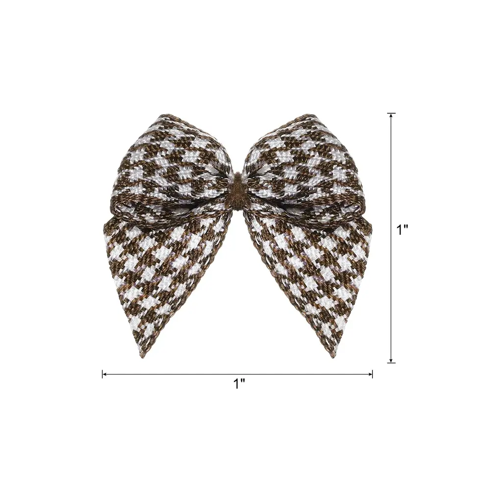What is this?These ribbon bows are mostly used in the hemming and decoration of leather goods, bags, sleeping bags, tents, and clothing. Because polyester ribbon is soft, they are mostly used for the hemming of softer fabrics.What will I get?The Mini Ribbon Bow, we provide here, is in size of:Material: PolyesterColor: Brown and WhiteDimension: 1 x 1 inch (W*H)In the package of: 50 x Mini Ribbon BowsAre there any advantages of the product?Polyester material, fine texture, high washing fastness, no fading, smooth and wrinkle-resistant, flexible to the touch.The product is bright in color, fashionable and new in design, and can be used on many occasions. It is suitable for hair accessories, clothing, Christmas gifts, baking decorations, gift box packaging, hotel decorations, wedding decorations, flower packaging, birthday arrangements, etc.How to use it?1. Choose the color of the Mini Ribbon Bow that matches your project or gift wrapping paper. 2. Use twist ties (not included here) or or glue to secure the mini ribbon bows to desired surfaces such as gift boxes, cards, or crafts. 3. Adjust the position of the bow if necessary to get the desired look.What should I notice?Manual measurement, please allow +/-3mm errors in size.Please note that there may be a slight color difference between the picture and the actual product, and the color is subject to the actual product received.
