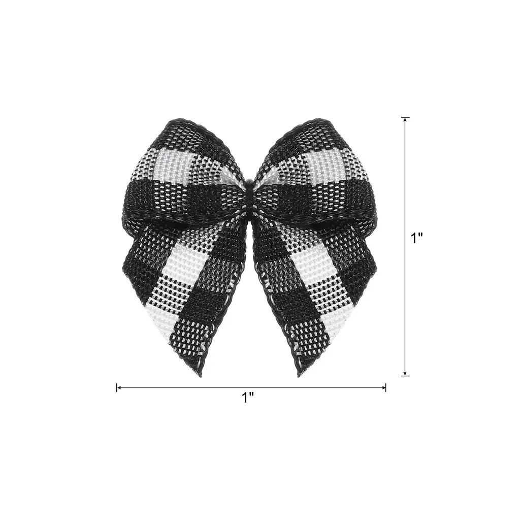 50pcs Mini Gingham Ribbon Bow 1" Checkered Fabric Ribbon Bows - Black And Red
