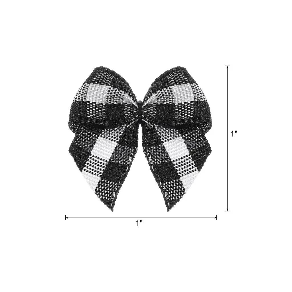 50pcs Mini Gingham Ribbon Bow 1" Checkered Fabric Ribbon Bows - Red And White