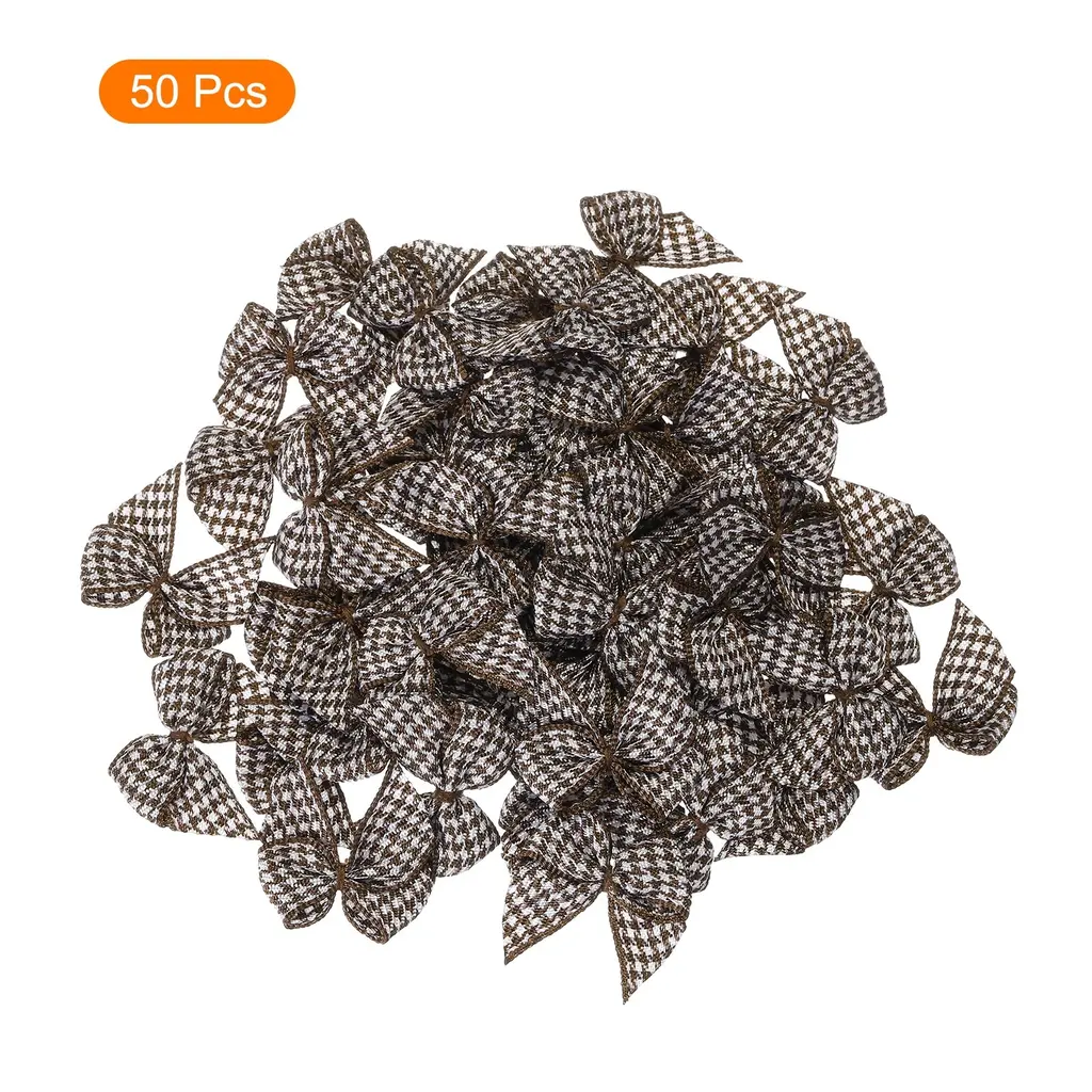 What is this?These ribbon bows are mostly used in the hemming and decoration of leather goods, bags, sleeping bags, tents, and clothing. Because polyester ribbon is soft, they are mostly used for the hemming of softer fabrics.What will I get?The Mini Ribbon Bow, we provide here, is in size of:Material: PolyesterColor: Brown and WhiteDimension: 1 x 1 inch (W*H)In the package of: 50 x Mini Ribbon BowsAre there any advantages of the product?Polyester material, fine texture, high washing fastness, no fading, smooth and wrinkle-resistant, flexible to the touch.The product is bright in color, fashionable and new in design, and can be used on many occasions. It is suitable for hair accessories, clothing, Christmas gifts, baking decorations, gift box packaging, hotel decorations, wedding decorations, flower packaging, birthday arrangements, etc.How to use it?1. Choose the color of the Mini Ribbon Bow that matches your project or gift wrapping paper. 2. Use twist ties (not included here) or or glue to secure the mini ribbon bows to desired surfaces such as gift boxes, cards, or crafts. 3. Adjust the position of the bow if necessary to get the desired look.What should I notice?Manual measurement, please allow +/-3mm errors in size.Please note that there may be a slight color difference between the picture and the actual product, and the color is subject to the actual product received.