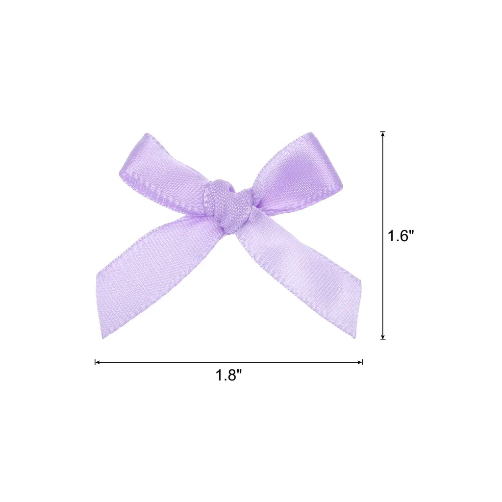 What is this?These ribbon bows are mostly used in the hemming and decoration of leather goods, bags, sleeping bags, tents, and clothing. Because polyester ribbon is soft, they are mostly used for the hemming of softer fabrics.What will I get?The Mini Ribbon Bow, we provide here, is in size of:Material: PolyesterColor: Bright YellowDimension: 1.8 x 1.6 inchIn the package of: 50 x Mini Ribbon BowsAre there any advantages of the product?1. Premium polyester material, fine texture, high washing fastness, no fading, smooth and wrinkle-resistant, flexible to the touch.2. The product is bright in color, fashionable and new in design, and can be used on many occasions. It is suitable for hair accessories, clothing, Christmas gifts, baking decorations, gift box packaging, hotel decorations, wedding decorations, flower packaging, birthday arrangements, etc.How to use it?1. Choose the color of the Mini Ribbon Bow that matches your project or gift wrapping paper. 2. Use twist ties (not included here) or or glue to secure the mini ribbon bows to desired surfaces such as gift boxes, cards, or crafts. 3. Adjust the position of the bow if necessary to get the desired look.What should I notice?Manual measurement, please allow slight errors in size.Please note that there may be a slight color difference between the picture and the actual product, and the color is subject to the actual product received.