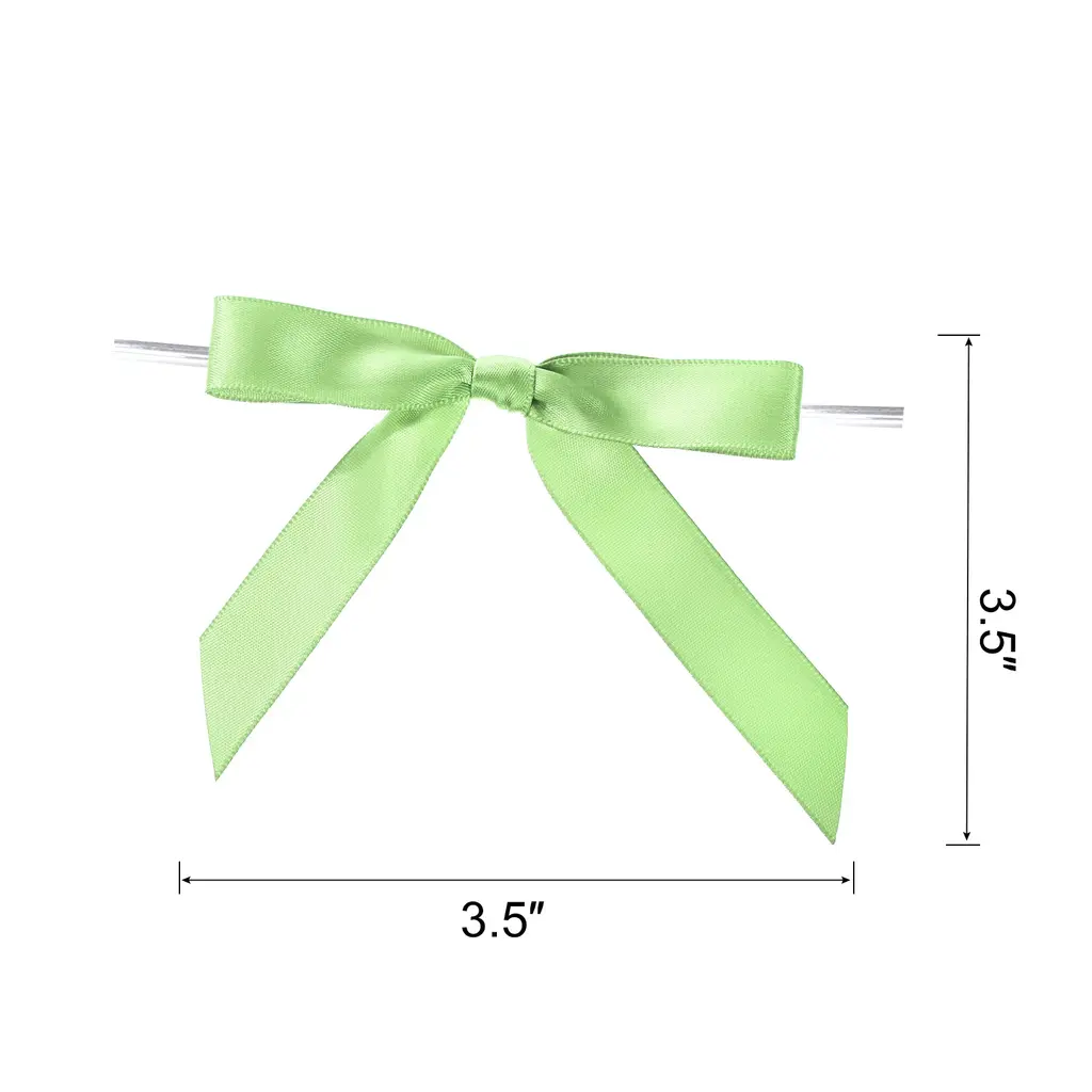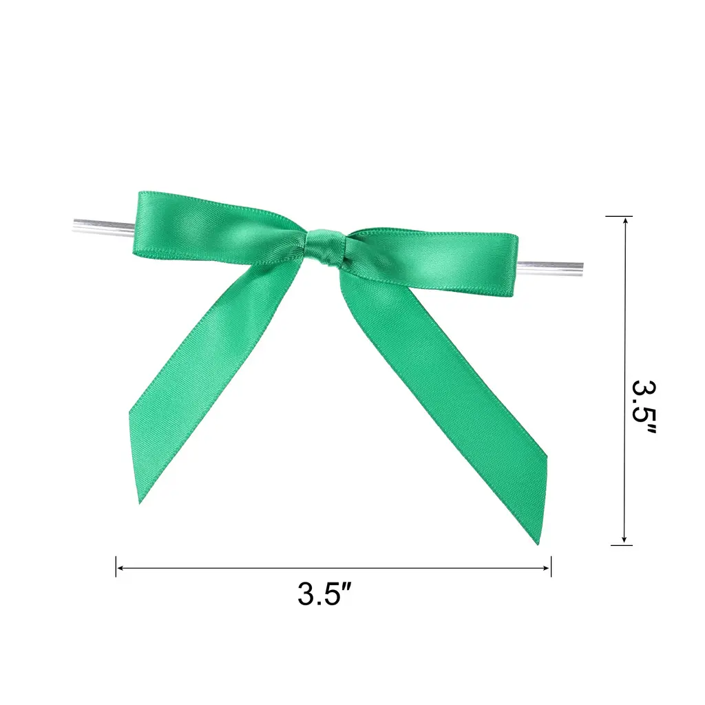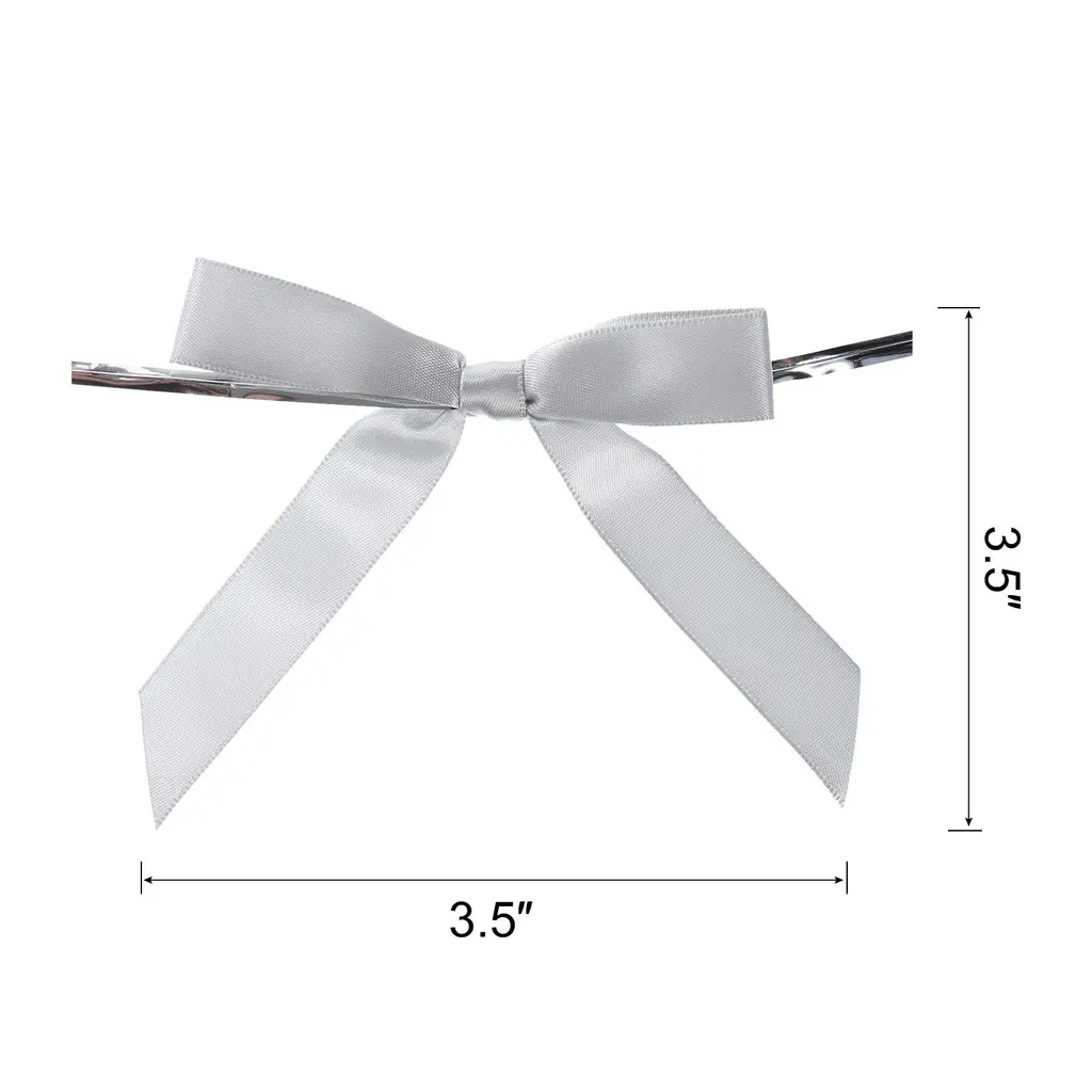 50pcs Mini Ribbon Bow 3.5" Twist Tie Fabric Satin Ribbon Flower Bows - Gold Tone