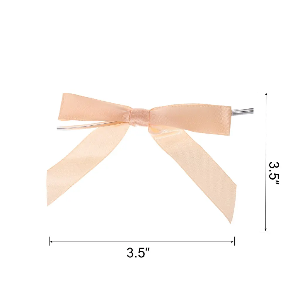 50pcs Mini Ribbon Bow 3.5" Twist Tie Fabric Satin Ribbon Flower Bows - Rose Gold