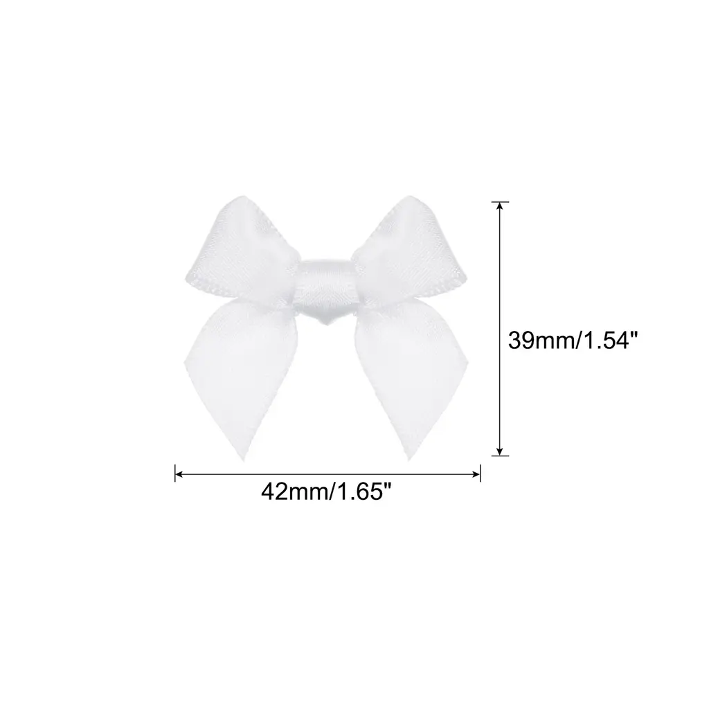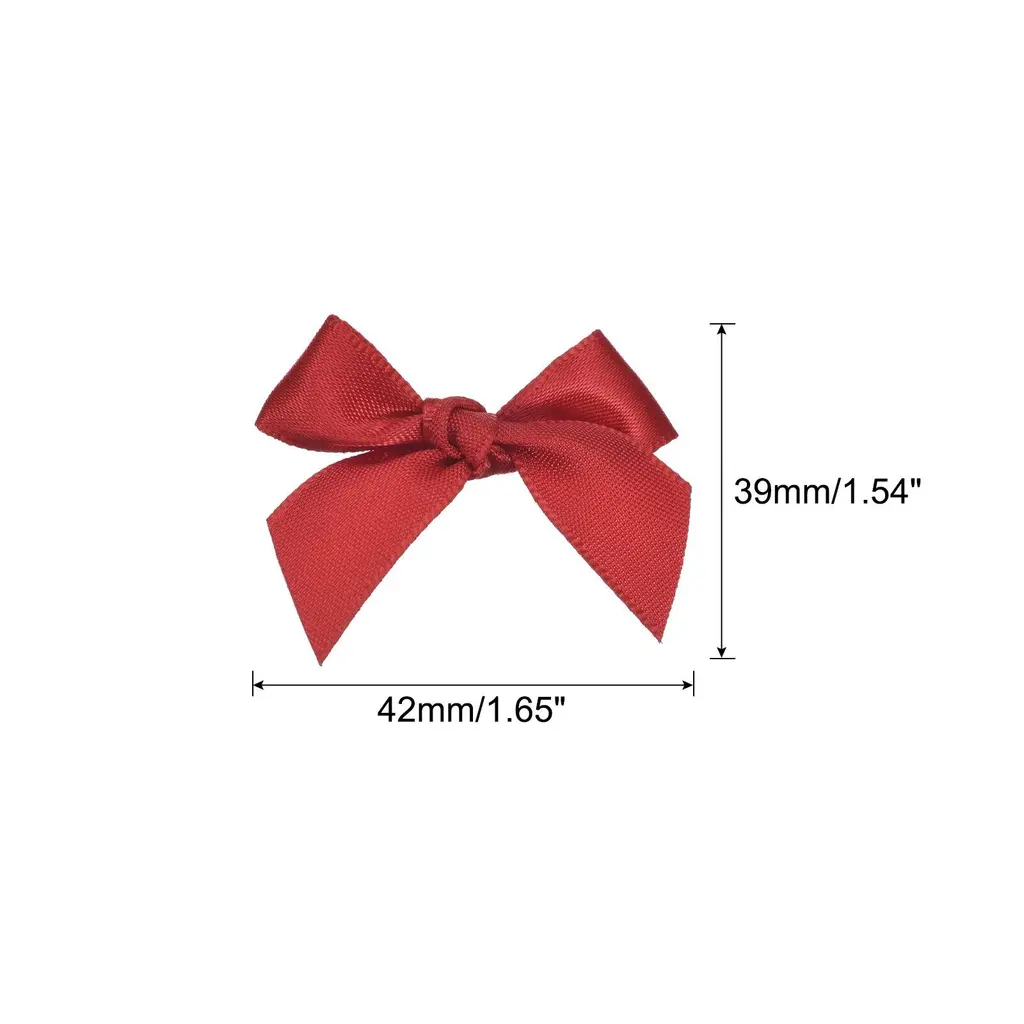 What is this?These ribbon bows are mostly used in the hemming and decoration of leather goods, bags, sleeping bags, tents, and clothing. Because polyester ribbon is soft, they are mostly used for the hemming of softer fabrics.What will I get?The Mini Ribbon Bow, we provide here, is in size of:Material: PolyesterColor: RedDimension: 42 x 39mm/1.65 x 1.54 inch (L*W)In the package of: 50 x Mini Ribbon BowsAre there any advantages of the product?1. Polyester material, fine texture, high washing fastness, no fading, smooth and wrinkle-resistant, flexible to the touch.2. The product is bright in color, fashionable and new in design, and can be used on many occasions. It is suitable for hair accessories, clothing, Christmas gifts, baking decorations, gift box packaging, hotel decorations, wedding decorations, flower packaging, birthday arrangements, etc.How to use it?1. Choose the color of the Mini Ribbon Bow that matches your project or gift wrapping paper. 2. Use twist ties (not included here) or or glue to secure the mini ribbon bows to desired surfaces such as gift boxes, cards, or crafts. 3. Adjust the position of the bow if necessary to get the desired look.What should I notice?Manual measurement, please allow slight errors in size.Please note that there may be a slight color difference between the picture and the actual product, and the color is subject to the actual product received.