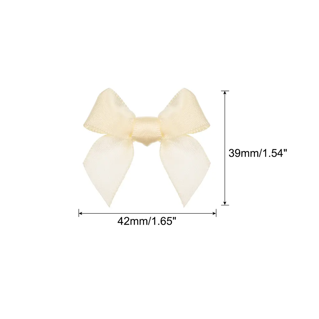 What is this?These ribbon bows are mostly used in the hemming and decoration of leather goods, bags, sleeping bags, tents, and clothing. Because polyester ribbon is soft, they are mostly used for the hemming of softer fabrics.What will I get?The Mini Ribbon Bow, we provide here, is in size of:Material: PolyesterColor: RedDimension: 42 x 39mm/1.65 x 1.54 inch (L*W)In the package of: 50 x Mini Ribbon BowsAre there any advantages of the product?1. Polyester material, fine texture, high washing fastness, no fading, smooth and wrinkle-resistant, flexible to the touch.2. The product is bright in color, fashionable and new in design, and can be used on many occasions. It is suitable for hair accessories, clothing, Christmas gifts, baking decorations, gift box packaging, hotel decorations, wedding decorations, flower packaging, birthday arrangements, etc.How to use it?1. Choose the color of the Mini Ribbon Bow that matches your project or gift wrapping paper. 2. Use twist ties (not included here) or or glue to secure the mini ribbon bows to desired surfaces such as gift boxes, cards, or crafts. 3. Adjust the position of the bow if necessary to get the desired look.What should I notice?Manual measurement, please allow slight errors in size.Please note that there may be a slight color difference between the picture and the actual product, and the color is subject to the actual product received.