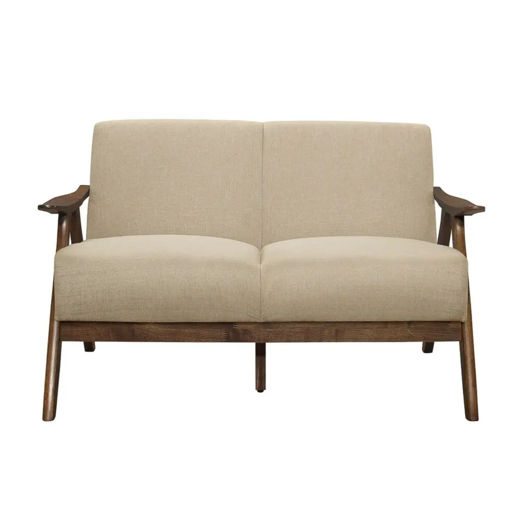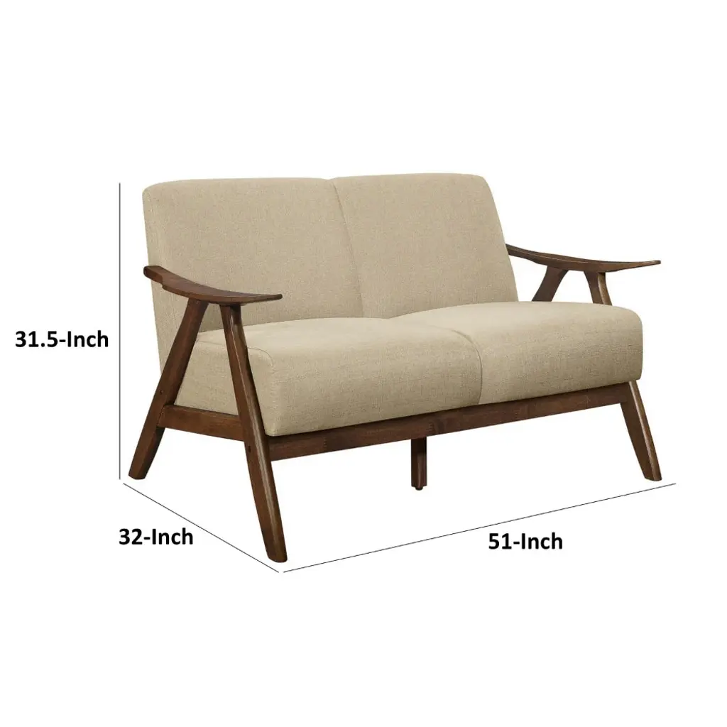 51-Inch Loveseat With Angled Rubberwood Frame And Textured Fabric Upholstery - Brown, Beige