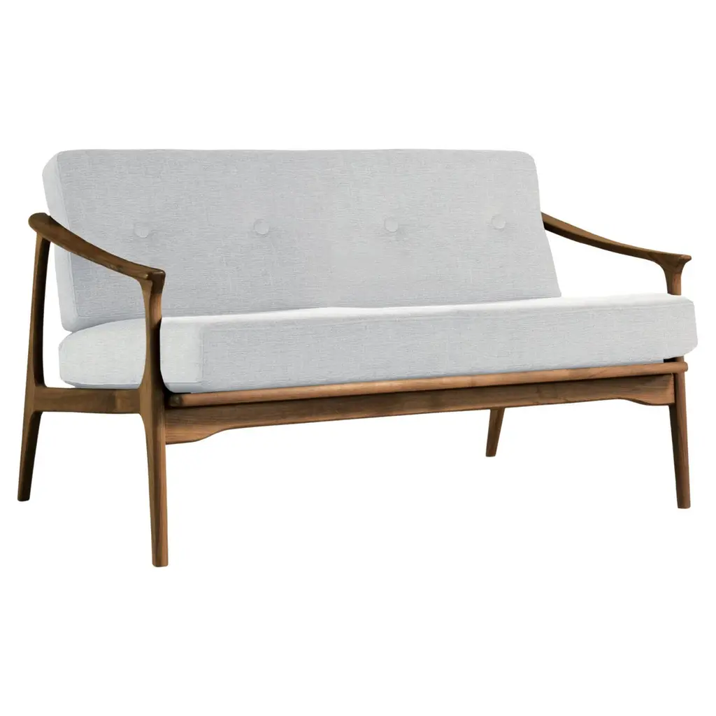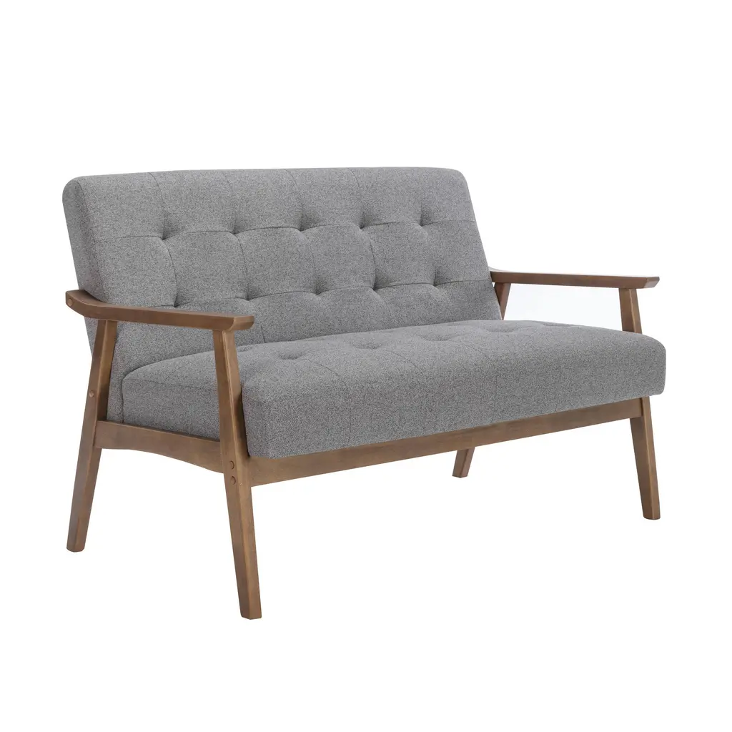 Specifications:Features:Description:Our loveseat boasts an updated transitional design that serves to elevate any interior aesthetic. Made with a sturdy solid rubber wood frame in a warm brown finish with breathable, soft textured polyester upholstery, this piece is the ultimate choice for comfort and charm. The wide cushioned backrest supports your spine and relieves fatigue.