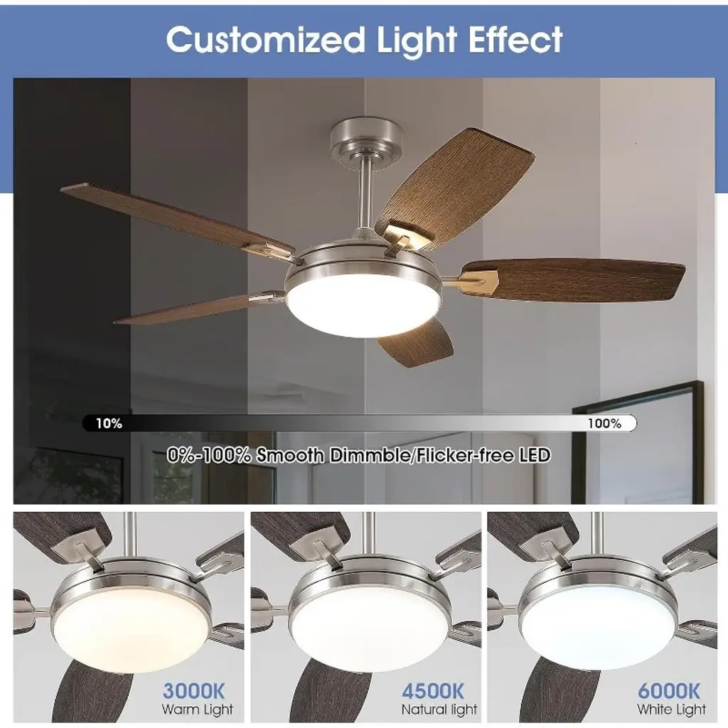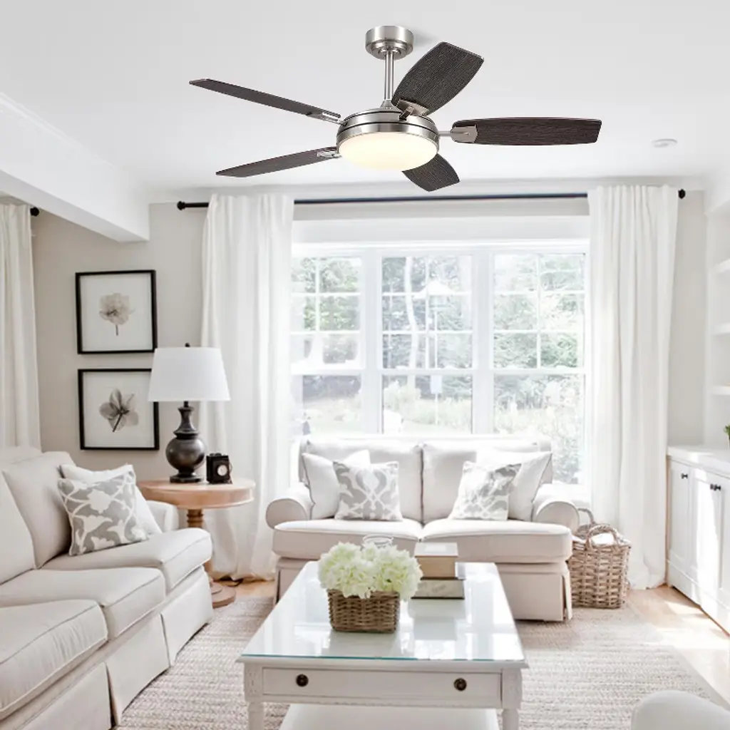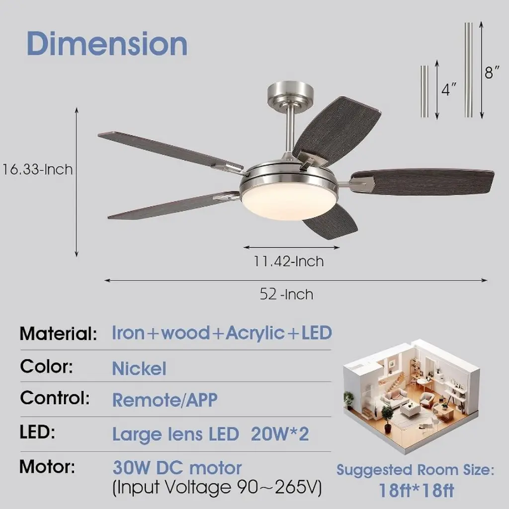 52 Inch Modern Ceiling Fan With Light,nickle Downrod With Dual Side Blades,reversible Dc Motor
