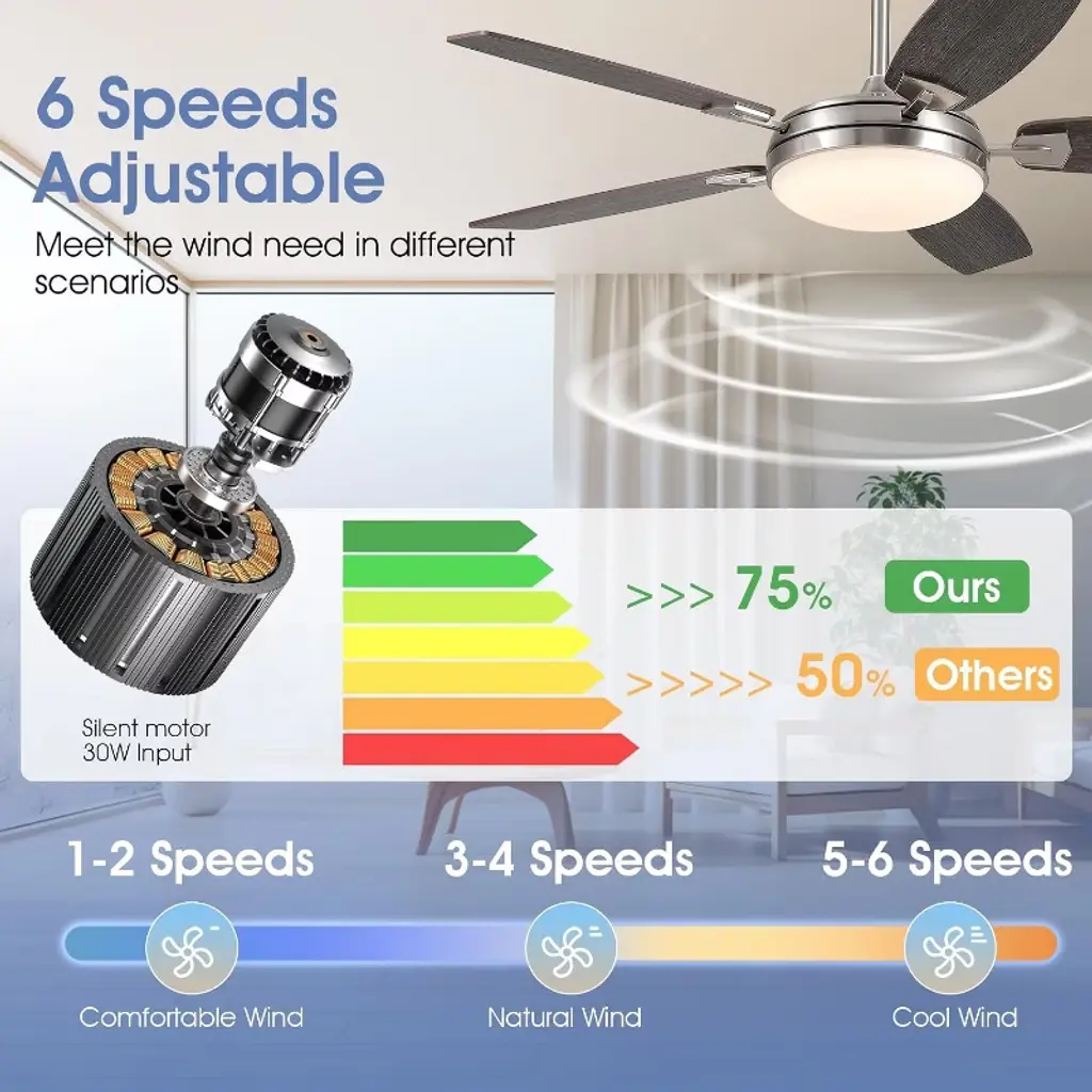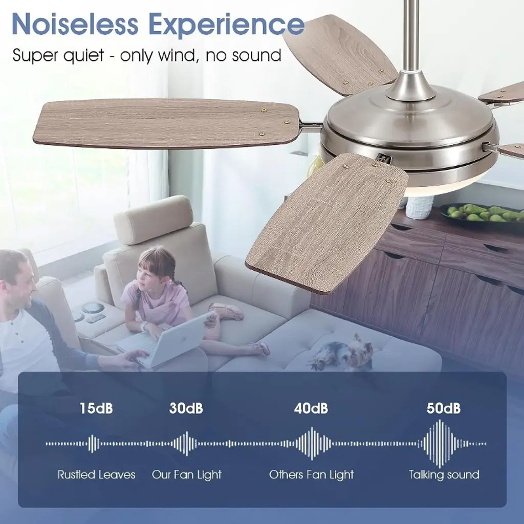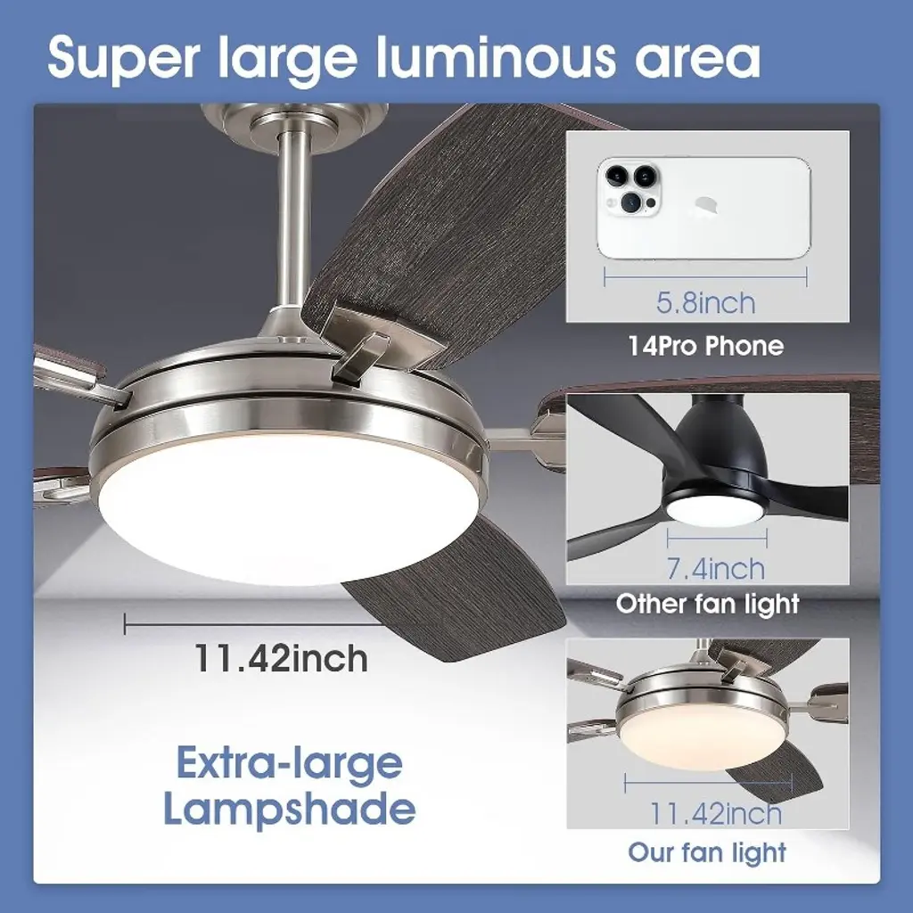 52 Inch Modern Ceiling Fan With Light,nickle Downrod With Dual Side Blades,reversible Dc Motor