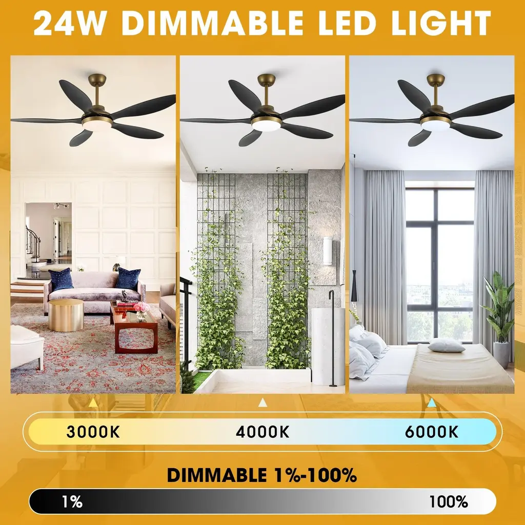 Punjab’s 52-inch Industrial Style Smart Ceiling Fan is the perfect way to add a ceiling fan to your smart home ecosystem. The fan offers multiple control options: remote control (included), control via a smart device (phone or tablet), or voice control using Alexa or Google Assistant. The integrated 24W LED provides ample illumination and you can choose from 3 different light temperature settings of 3000K/4000K/6000K. Beautiful gold finish, black ABS fan blades and lampshade complement each other. Designed for indoor use in large rooms, this smart fan features a quiet yet powerful reversible motor to ensure year-round comfort.
