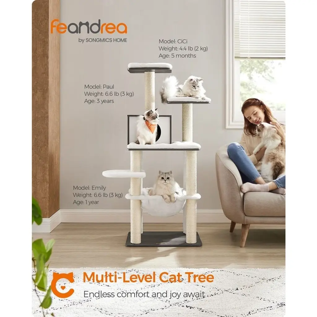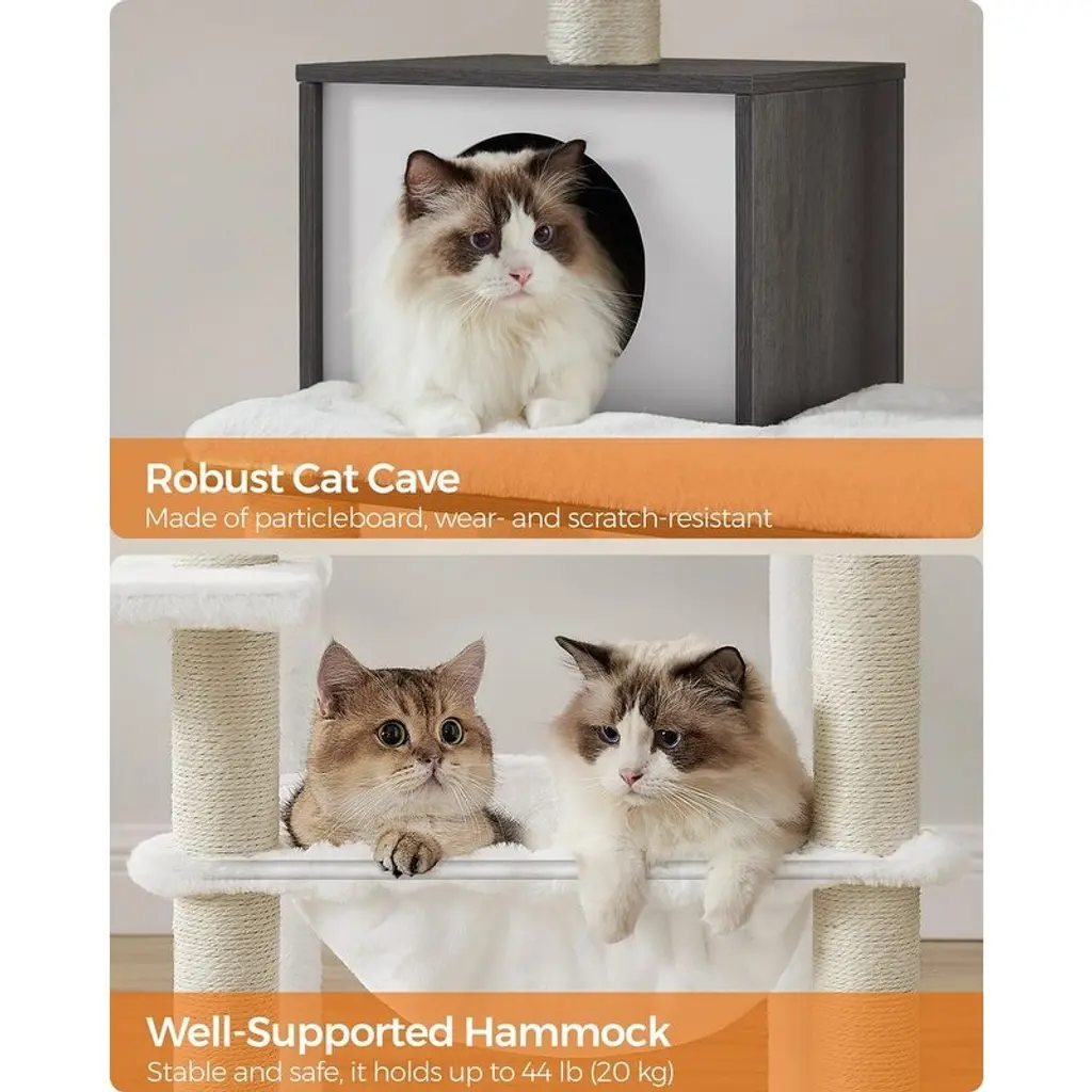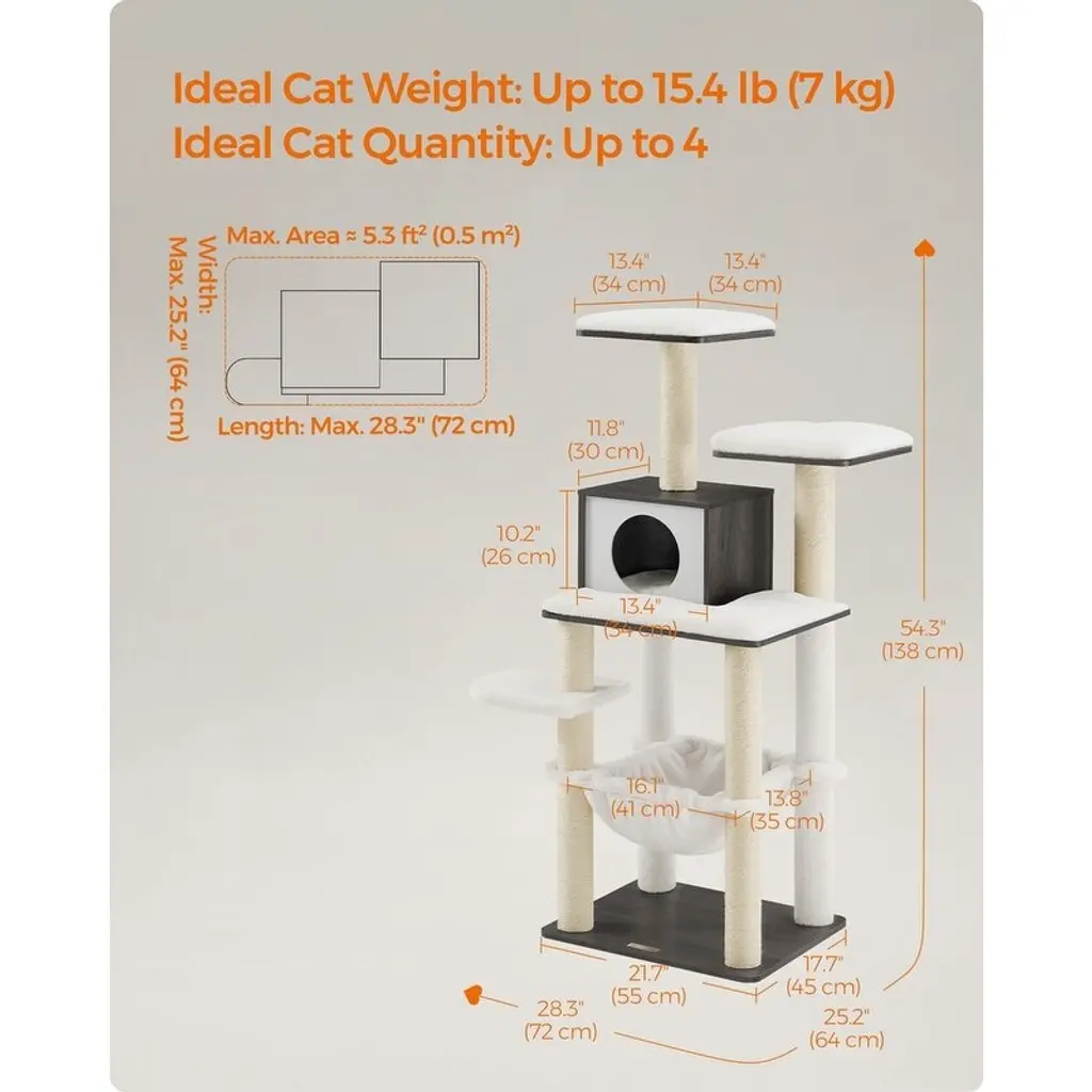 54.3-Inch Cat Tower With Scratching Posts, Hammock, Cat Cave, Padded Perches, Wooden Cat Condo - Misty Grey