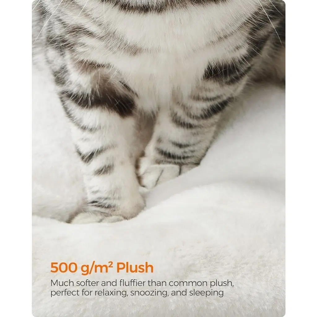 Specifications:The highlights of the cat tree at a glance:Description :Rich in Style: The rustic brown finish oozes a warm charm on this cat tree, and the white fuzzy cushion and basket adds a little pop and contrast, making this piece of cat furniture a stylish, rustic snow-covered ski condoLarge Space, Happy Cats! The more room, the better, if you ask any cat. Great size of 21.7”L x 17.7”W x 54.3”H makes this cat tower suitable for kittens and large cats. A spacious cat cave at 13.4”L x 11.8”W x 10”H allows them to snooze cozily insideDurability for Long-Lasting Joy: Thanks to its strong structure, this cat tree, which consists of durable particleboard and robust sisal-wrapped posts, will create long-lasting joy for your little furballs to climb, scratch, and loungeSoft & Removable for Cleaning: Both on the 2 top perches and in the cat cave, there’s a fluffy cushion made of 500 g/m² plush—softer, denser, and cozier to purr about! Also, the cushion is removable and hand washable for easy cleaningStability Is Counted In: To make this cat tree stable for energetic cats to jump up and down, the 21.7”L x 17.7”W x 0.5”H base is equipped with non-slip pads at the bottom and an anti-tip kit is also provided to ensure the stability of the whole cat treeNotes: