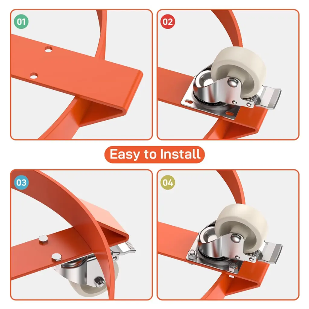 55 Gallon Heavy Duty Drum Dolly, 1250lbs Load Capacity Drum Cart, Non Tipping Hand Truck With 4 Swivel Casters Wheel For Warehouse Drum Handling