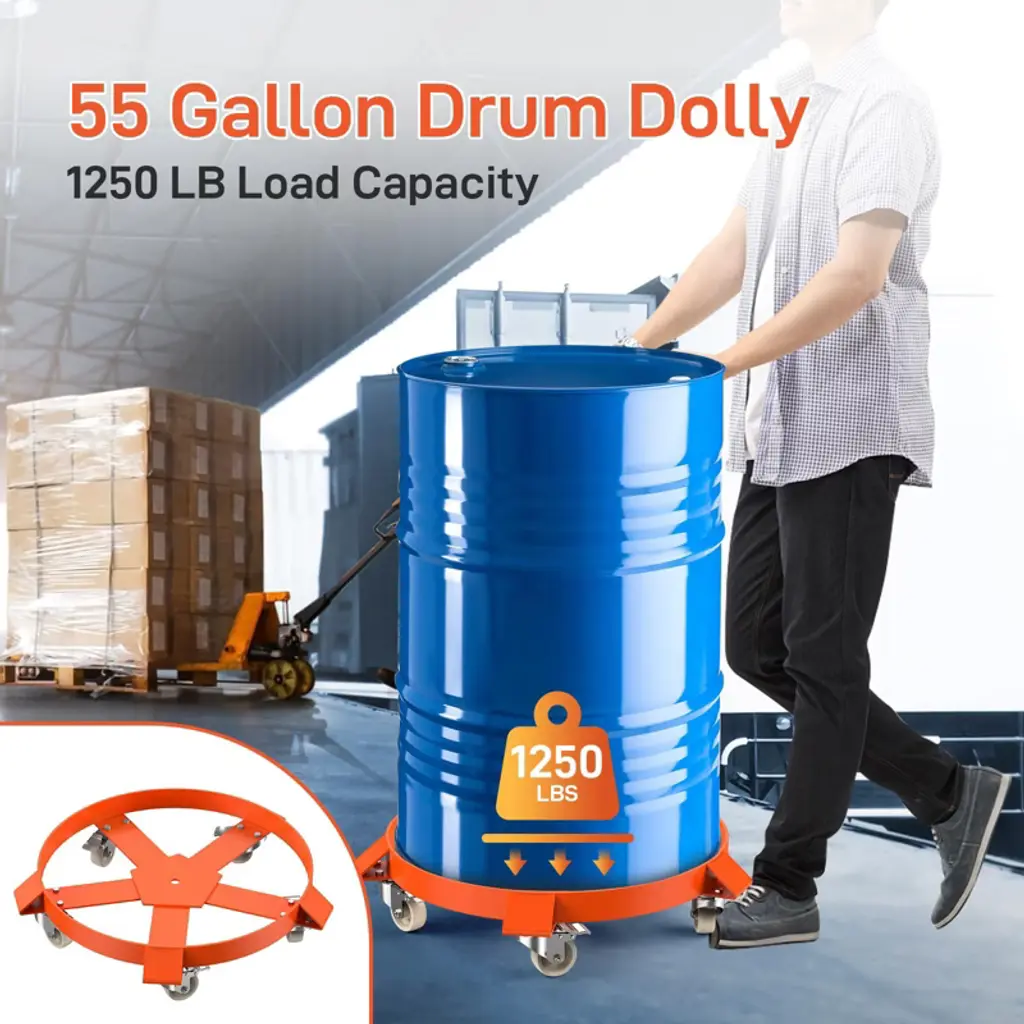 55 Gallon Heavy Duty Drum Dolly, 1250lbs Load Capacity Drum Cart, Non Tipping Hand Truck With 5 Swivel Casters Wheel For Warehouse Drum Handling, 2Pc