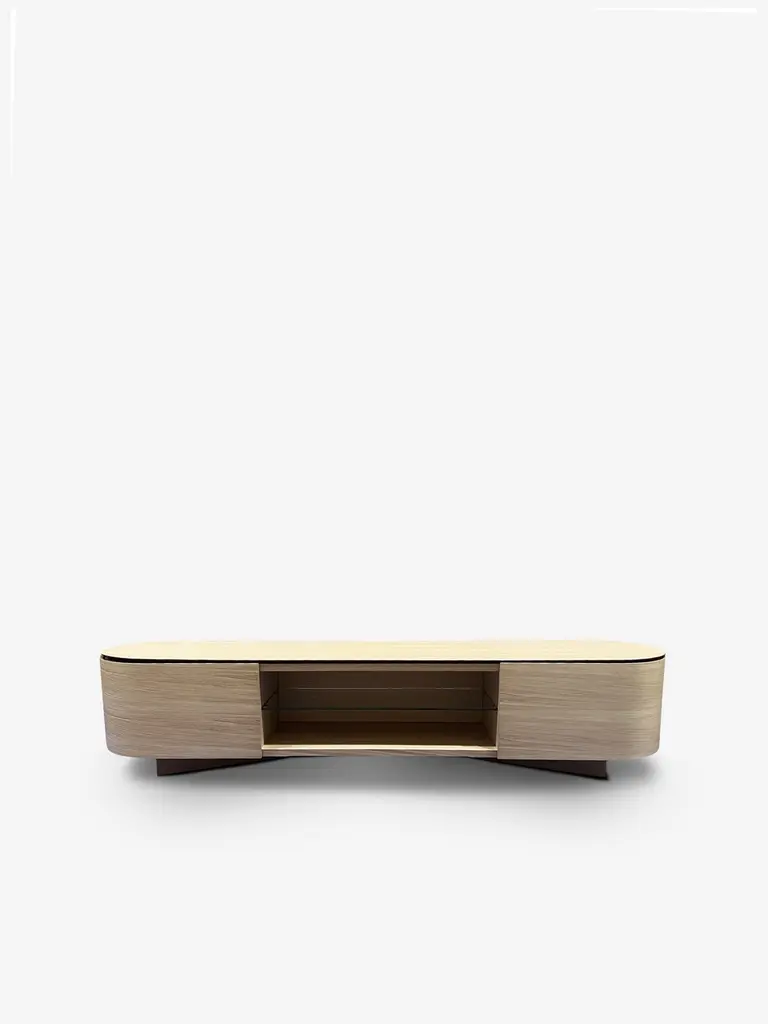 558 Rondos Credenza In Oak- 2 Drawers With Open Compartment