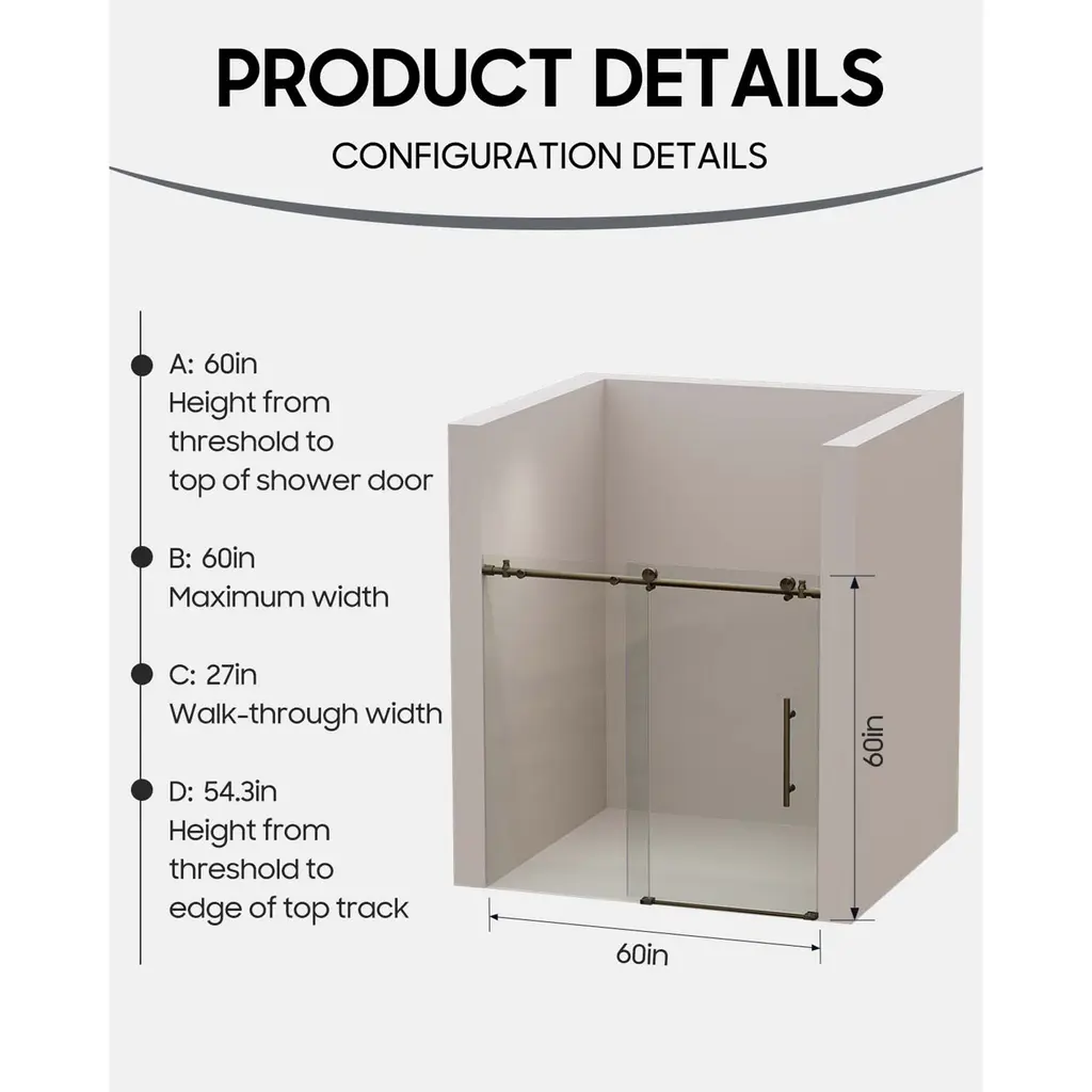 56-60" X 60" H Frameless Sliding Bath Door - Clear