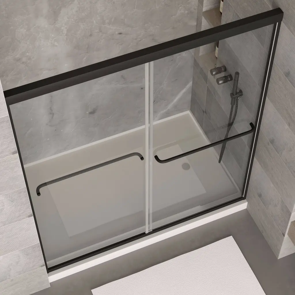 56-60''w X 70'' H Glass Double Sliding Shower Door With 1/4" Tempered Glass In Black/chrome - 60x70 - Matte Black