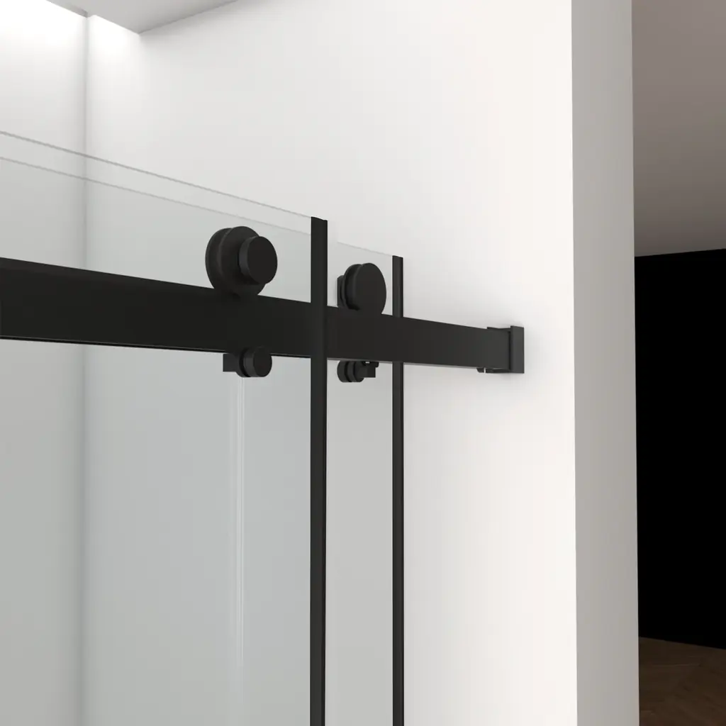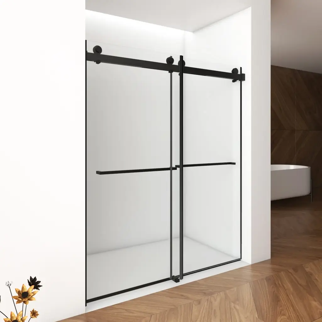 56"-60"w X 70"frameless Sliding Shower Door With Clear Tempered Glass - Matte Black