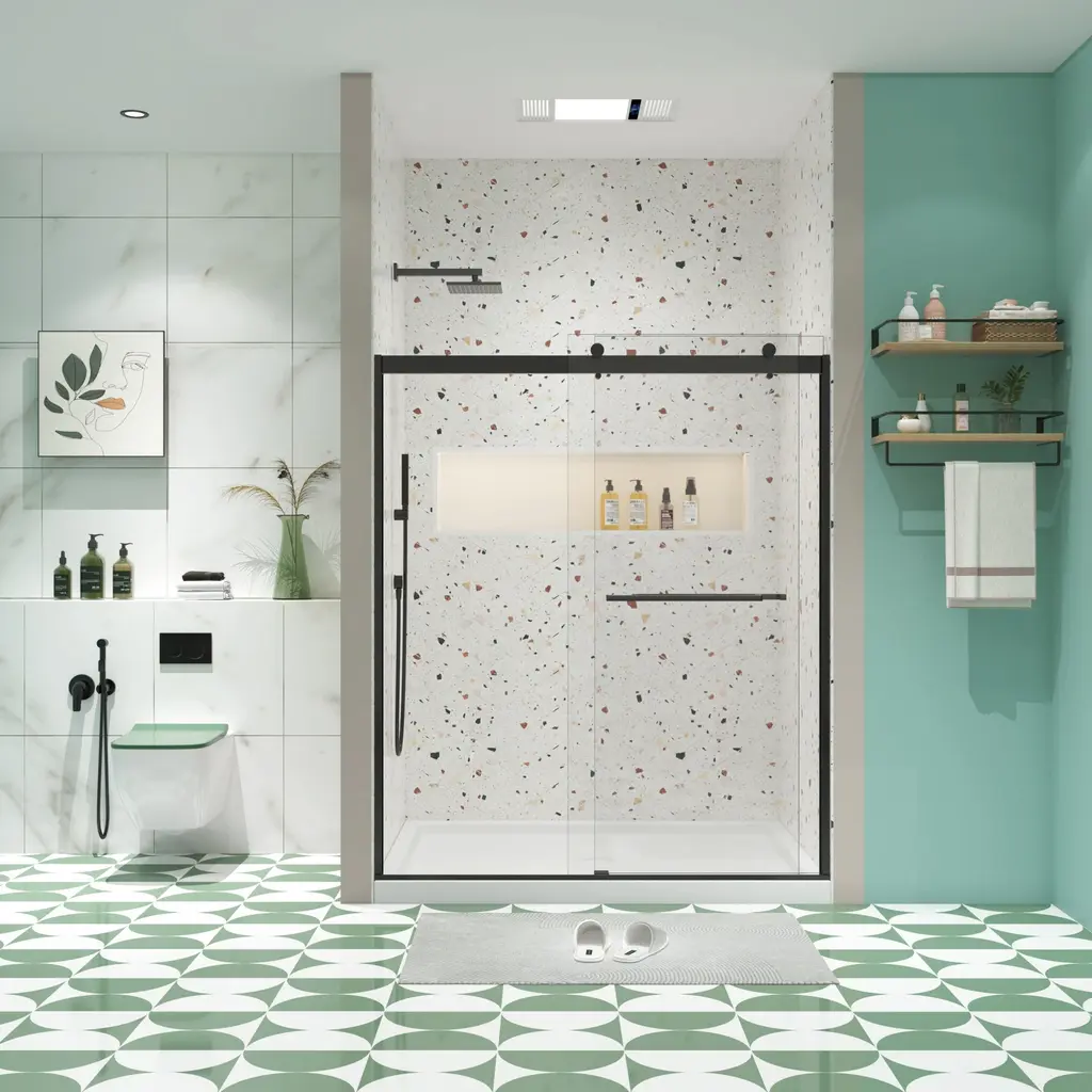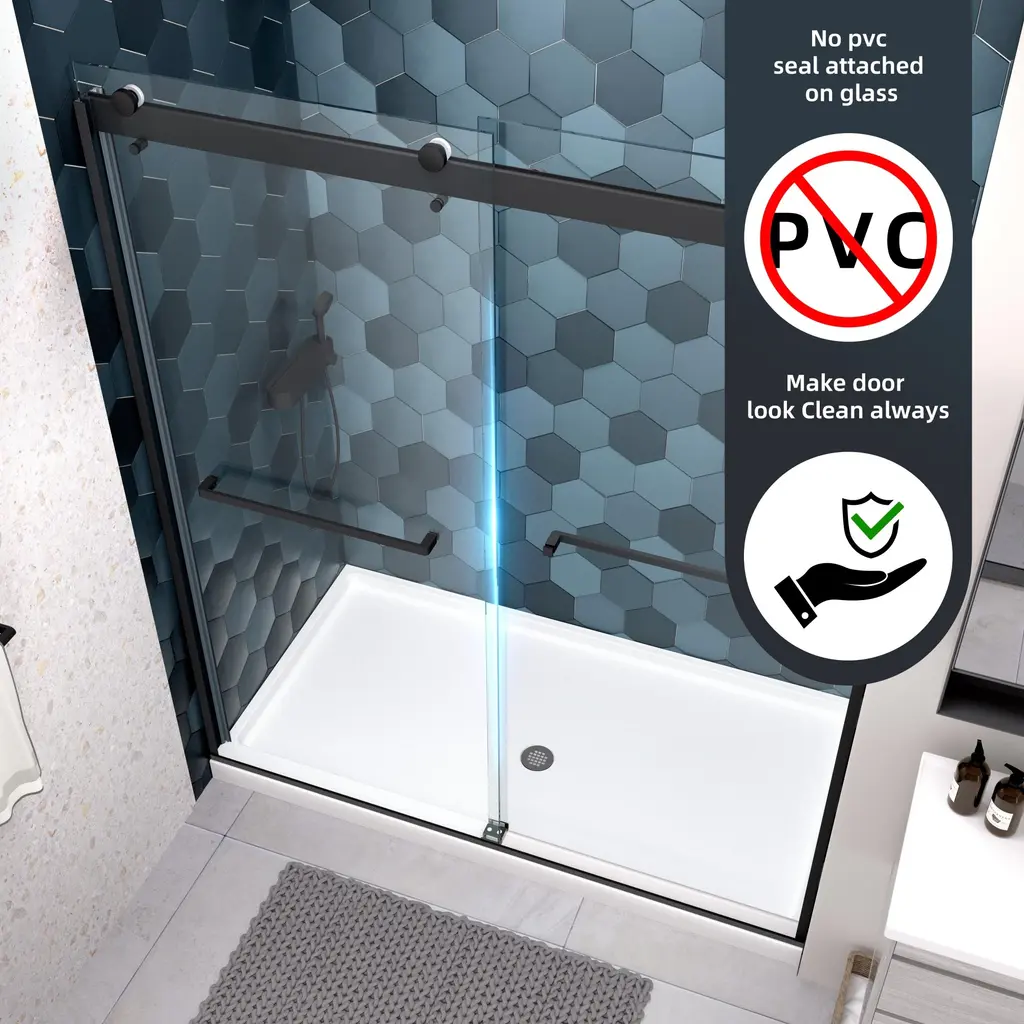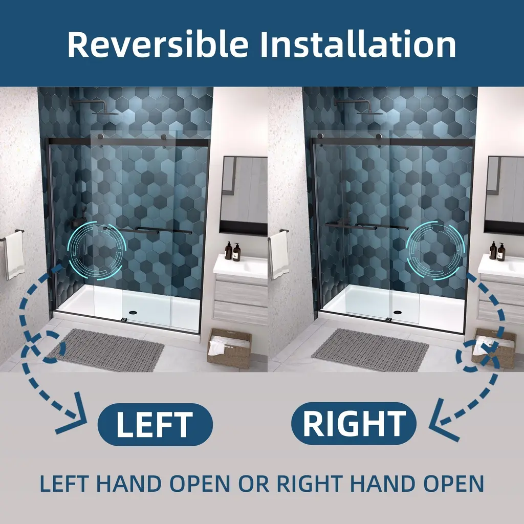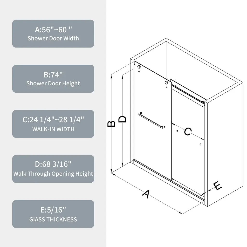 Upgrade your bathroom with the Premium Sliding Shower Door. Designed to provide both style and functionality, this shower door is perfect for any modern bathroom setting. Premium Construction: This sliding shower door features a durable design and is crafted with high-quality materials, ensuring long-lasting performance. Tempered Glass: The 5/16" tempered glass provides strength and safety, offering peace of mind during use. It is also treated with a nanocoating for easy cleaning and features a protective film to prevent shattering. Smooth Sliding: The door is equipped with a top rail made of premium #304 stainless steel hardware, allowing for smooth and effortless sliding. It has undergone rigorous testing with 36,000 cycles for reliable operation. Stylish and Functional: With its sleek design and transparent glass, this sliding shower door adds a modern touch to any bathroom decor. It also allows for maximum light flow, creating a spacious and inviting shower experience. Easy Installation: This shower door comes with all necessary hardware and clear instructions for hassle-free installation. It is designed to fit shower openings between 56" to 60" wide and 74" high.