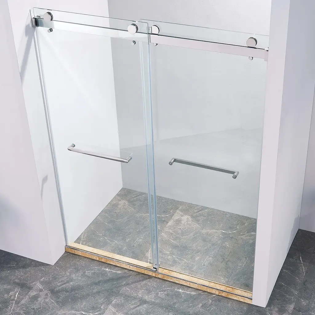 56 To 60 In. W X 75 In. H Sliding Frameless Shower Door With 5/16 Inch (8mm) Thick Tampered Glass - Chrome
