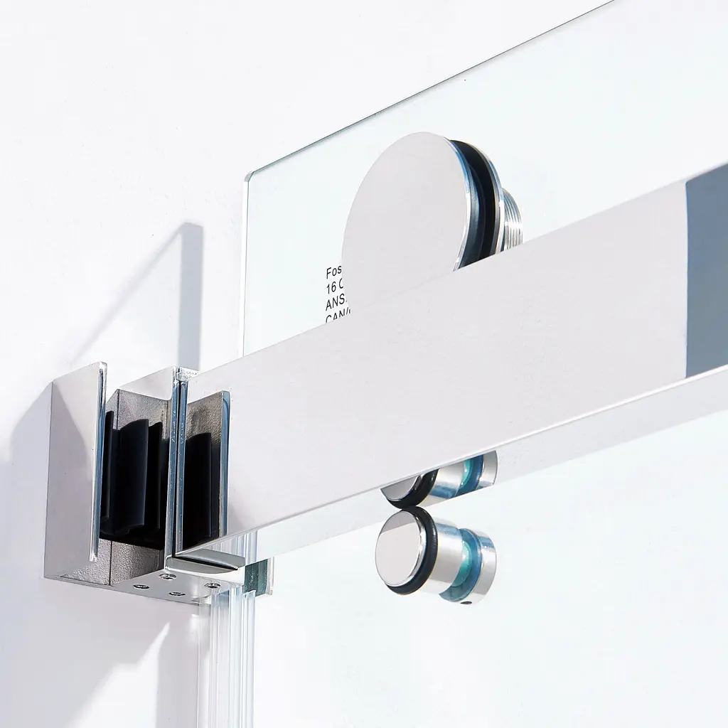 RECTANGLE TUBE DOUBLE SLIDING DOOR:Minimalist rectangle tube top rail double sliding door maximizes your bathroom layout. The Frameless shower door can be adjusted to 56-60" width by cutting, maximize your bathroom layout. SAFETY GLASS & STYLISH BATHROOM PARTITION: This product is made of high quality 5/16"(8mm) SGCC & ANSI dual certified Xinyi tempered glass, for impact resistance and high tensile strength, increase the strength of the glass, avoid the splinters splashing hurt. Tempered glass surfaces are smooth and easy to clean and maintain. ALL-ROUND DETAILEDLY UPGRADE: Upgraded low glide track, better Anti-water effect with more simple appearance; Upgraded top track system, more quiet and smooth and more effective soft close effect; Upgraded Anti-water rubber strip, to keep your bathroom clean and tidy at all times. Refer to more specific information from the detailed pictures or feel free to contact us. HIGH-QUALITY MATERIALS & SUPER STEADY STUCTRUE: The shower door's main structure is made of lightweight and durable 304 Stainless Steel alloy with accurate production technology, ensuring the supper stability and durability of the shower door without deformation over time. CLASSIC PRETTY APPEARANCE & SOFT CLOSE: 55mm diameter stainless steel big wheels, with high-tech waterproof paint, which offers excellent corrosion and oxidation resistance, to ensure that your shower door is smooth while keeping silent, with the double sliding design, friendly for easy access while using minimal space. A long mechanical life, with the rubber strip & stopper, provide soft and smooth opening and closing during the unobstructed movement. ENJOY EASY INSTALLATION: The complete packaging of the shower door includes all necessary components, ensuring a smooth and unobstructed installation process. And the packaging comes with an easy to understand Assembly Instruction that covers component preparation and step-by-step installation. A detailed Video Installation Guide is also included to make each assembly step precise and enjoyable.
