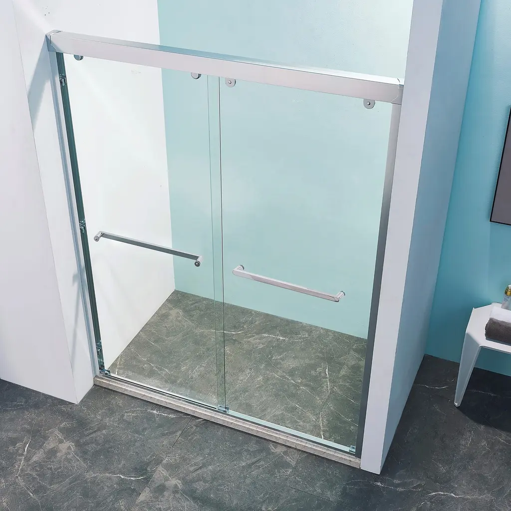 ALUMINIUM ALLOY DOUBLE SLIDING DOOR:Graceful Aluminium alloy frame double sliding door maximizes your bathroom layout. The shower door can be adjusted to 56-60" width by cutting, maximize your bathroom layout. Also support the wall tilt installation within 1/2" SAFETY GLASS & STYLISH BATHROOM PARTITION: This product is made of high quality 5/16"(8mm) SGCC & ANSI dual certified Xinyi tempered glass, for impact resistance and high tensile strength, increase the strength of the glass, avoid the splinters splashing hurt. Tempered glass surfaces are smooth and easy to clean and maintain. HIGH-QUALITY MATERIALS & SUPER STEADY STUCTRUE: The shower door's main structure is made of lightweight and durable Aluminium alloy with accurate production technology, ensuring the supper stability and durability of the shower door without deformation over time. CLASSIC PRETTY APPEARANCE & SOFT CLOSE: Mute stainless steel wheels, with high-tech waterproof paint, which offers excellent corrosion and oxidation resistance, to ensure that your shower door is smooth while keeping silent, with the double sliding design, friendly for easy access while using minimal space. A long mechanical life, with the soft stopper, provide soft and smooth opening and closing during the unobstructed movement. ENJOY EASY INSTALLATION: The complete packaging of the shower door includes all necessary components, ensuring a smooth and unobstructed installation process. And the packaging comes with an easy to understand Assembly Instruction that covers component preparation and step-by-step installation. A detailed Video Installation Guide is also included to make each assembly step precise and enjoyable.