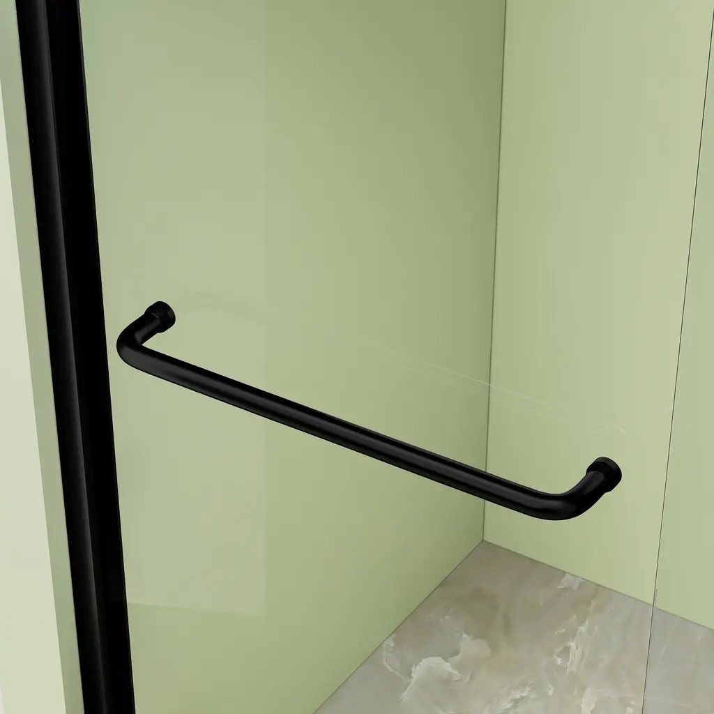 The MESA Aluminum frame Shower Door offers a sleek and modern design, elevating the look of any bathroom. The clear tempered glass provides a spacious and open feel, while the stainless steel hardware and support bar adds a touch of elegance.